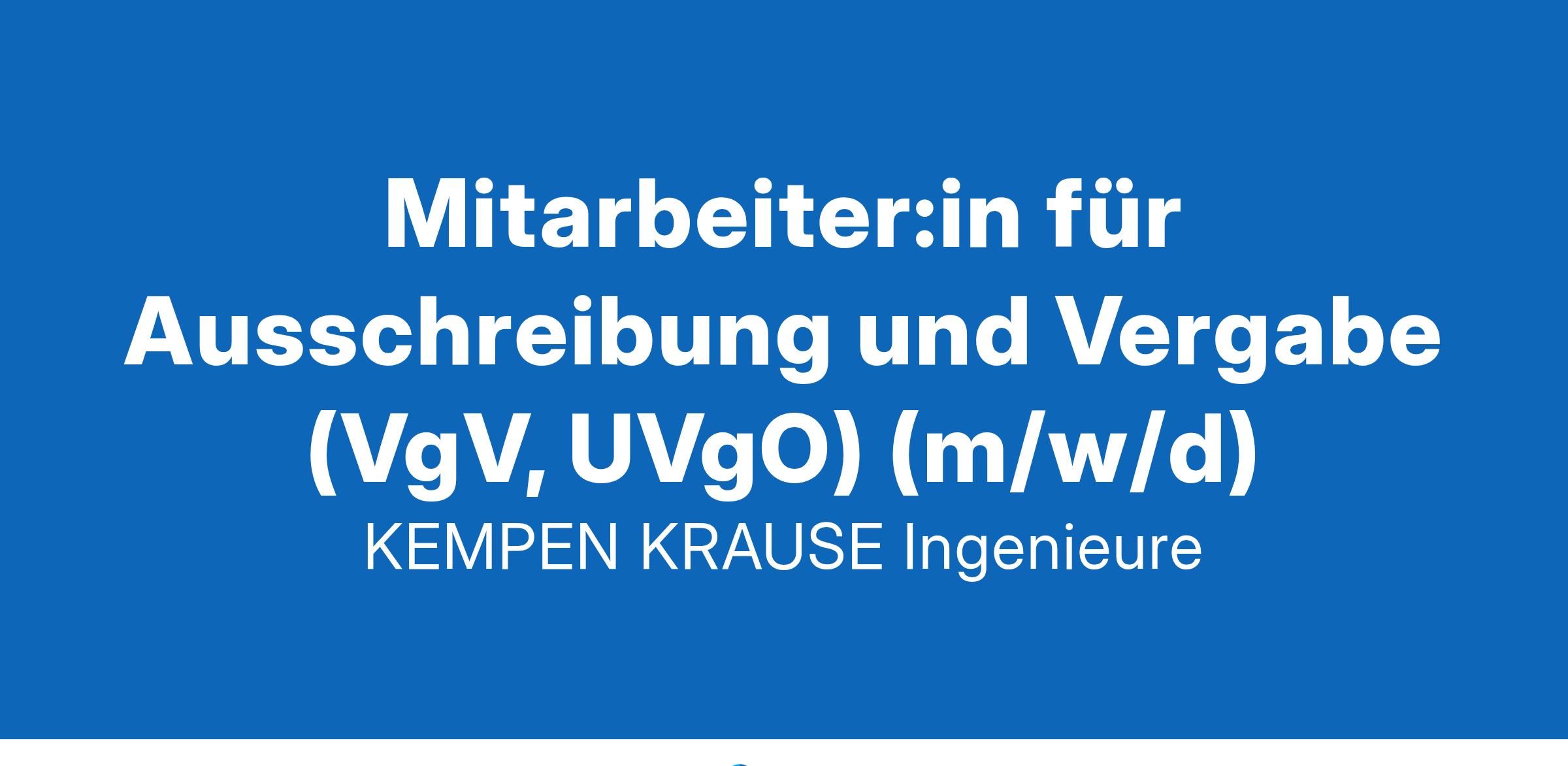 Mitarbeiter:in für Ausschreibung und Vergabe (VgV, UVgO) (m/w/d) Ihre neue Herausforderung Formal präzise und termingerechte Bearbeitung öffentlicher Ausschreibungen (VgV, UVgO) Erstellen detaillierter Projektdokumentationen, von Wettbewerbs-Präsentationen und Vorträgen Bearbeitung von Emails rund um die Vergabeverfahren Dokumentation des Bewerbungsprozesses bis zum finalen Ergebnis Das sollten Sie mitbringen Abgeschlossenes Studium (Bauingenieurwesen/ Architektur/ Kommunikationswissenschaften/ o.Ä.) oder technische oder kaufmännische Ausbildung Erfahrung im Umgang mit den aktuellen MS-Office-Produkten Deutsch als Muttersprache oder verhandlungssicher in Wort und Schrift (mind. C2) Eigenständige, systematische und zielgerichtete Arbeitsweise, die zu absolut zuverlässigen Ergebnissen führt Schnelle Auffassungsgabe Terminbewusstsein und ein gesundes Maß an Kreativität Hohe Motivation und Teamorientierung Erste Erfahrung in Ausschreibungs- bzw. Vergabeprozessen von Vorteil, jedoch nicht zwingend erforderlich Wir bieten Einen unbefristeten Arbeitsvertrag Flexible Arbeitszeitgestaltung und die Möglichkeit mobil zu arbeiten Strukturiertes Onboarding mit der Unterstützung durch eine:n erfahrene:n Mentor:in Regelmäßige Fortbildungsangebote Die Option auf Business-Bike Leasing und einen 25€ steuerfreien Zuschuss zum Deutschlandticket Regelmäßige Mitarbeiterevents, die den Teamgeist stärken und Raum für Austausch bieten. Lernen Sie uns kennen! Innovation, Tradition und Leidenschaft im Bauplanungsbereich vereinen wir bei KEMPEN KRAUSE Ingenieure in unserem täglichen Handeln. Mit einem Team von über 340 engagierten Mitarbeitern und Mitarbeiterinnen an acht Standorten deutschlandweit setzen wir seit über 100 Jahren innovative Lösungen um und beraten unsere Kunden in allen baubezogenen Planungsprozessen. Unser Anspruch ist es, durch kontinuierliches Wachstum und enge Zusammenarbeit stets ein verlässlicher Partner zu sein. In unserer Fachgruppe VgV übernehmen wir die Einreichung von Teilnahmeanträgen bei öffentlichen Ausschreibungen gemäß VgV und UVgO. Darüber hinaus unterstützen wir die verschiedenen Planungsabteilungen bei der Einreichung von Angeboten für private Ausschreibungen. Für unsere Fachgruppe VgV suchen wir zum nächstmöglichen Zeitpunkt am Standort Aachen eine:n motivierte:n Mitarbeiter:in für Ausschreibung und Vergabe (VgV, UVgO) (m/w/d). Wenn Sie mit uns gemeinsam die Zukunft der Bauplanung gestalten möchten, senden Sie bitte Ihren Lebenslauf z.Hd. Gerd Esselborn, Dipl.-Ing. unter Nennung der Kennziffer VgV-AC-01 an gerd.esselborn@kempenkrause.de Wir freuen uns darauf, Sie kennenzulernen! Weitere Informationen finden Sie unter www.kempenkrause.de KEMPEN KRAUSE INGENIEURE GMBH • Ritterstr. 20 • 52072 Aachen • +49 241 88 99 00 • kempenkrause.de
