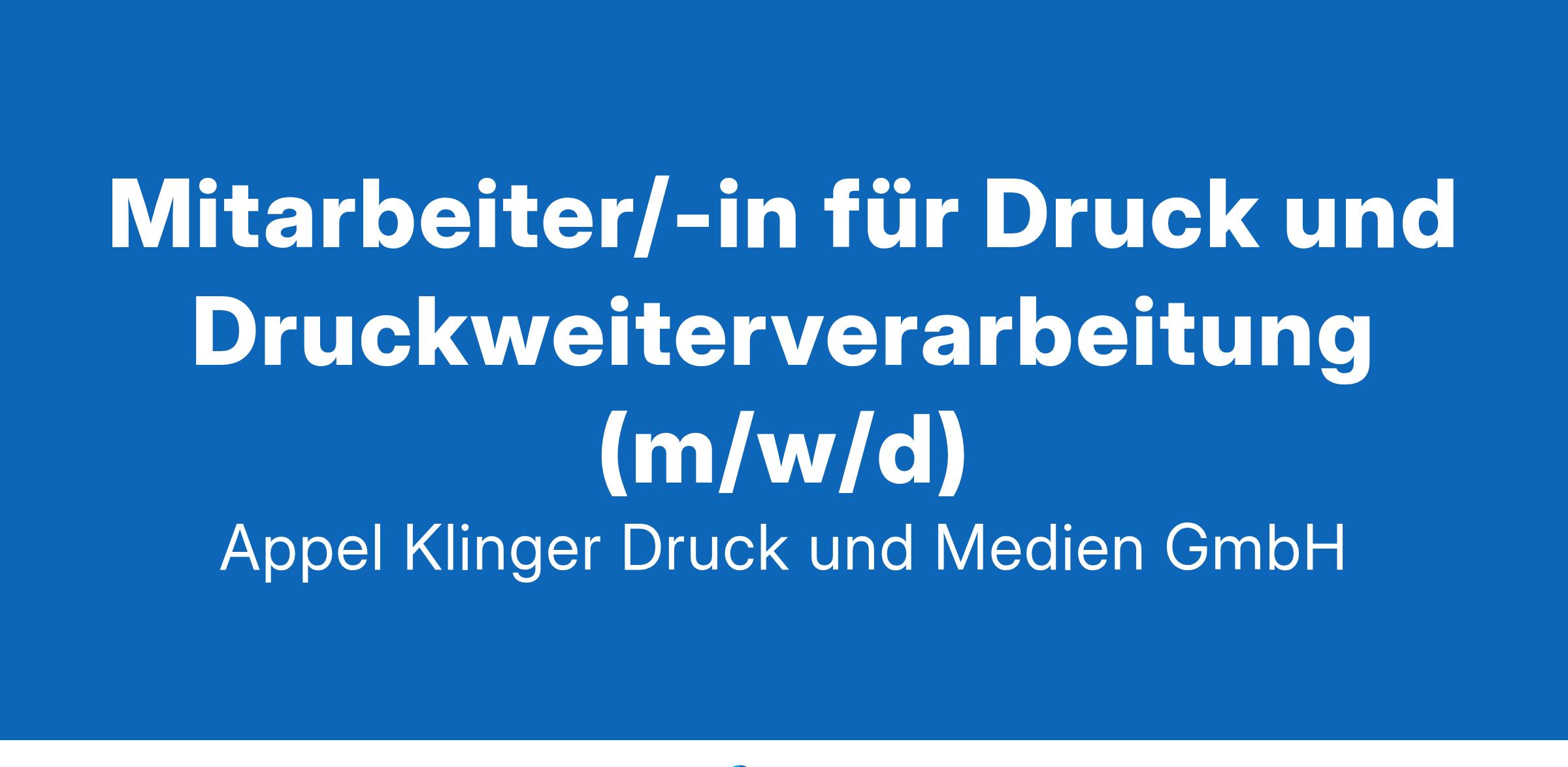 Mitarbeiter/-in für Druck und Druckweiterverarbeitung (m/w/d) Als innovatives und vollstufiges Druck- und Medienunternehmen arbeiten wir seit 20 Jahren in Franken nicht weit von der A73 entfernt für bundesweit bekannte Verlage und Medienhäuser, Organisationen der öffentlichen Hand und Gewerbekunden. Um weiter zu expandieren, suchen wir: Mitarbeiter/innen für Druckvorstufe und Druckweiterverarbeitung (Quereinsteiger sind herzlich Willkommen) Sie wollen wissen, was Sie erwartet? Mediengestaltung, Druckformerstellung, Datenbearbeitung Bedienung der Schneide-, Falz- und Heftmaschinen Optimierung der Arbeitsabläufe und Fehlerbehebung 1-Schicht Tätigkeit Was sollten Sie mitbringen? Abgeschlossene Berufsausbildung/Schulausbildung Auch Anlernen aus Branchenähnlichen Berufen möglich Selbständiges und zuverlässiges Arbeiten mit besonderem Augenmerk auf die Qualität Was wir Ihnen bieten? Interessante und abwechslungsreiche Tätigkeit in einem jungen Team Angenehmes Arbeitsklima in einem Familienunternehmen Marktgerechte Bezahlung Eine sichere Arbeitsstelle in einem wachsenden Unternehmen Zielgerichtete Einarbeitung Haben Sie Interesse an einer neuen Herausforderung in einer weiterwachsenden Firma? Dann freuen wir uns auf Ihre ONLINE-Bewerbung unter der E-Mail-Adresse gappel@ak-druck-medien.de . Für Fragen steht Ihnen Herr Gerhard Appel gern unter 09266 992815 zur Verfügung. Kontakt Herr Gerhard Appel 09266 992815 gappel@ak-druck-medien.de Einsatzort Schneckenlohe Appel & Klinger Druck und Medien GmbH Bahnhofstr. 3a 96277 Schneckenlohe www.ak-druck-medien.de
