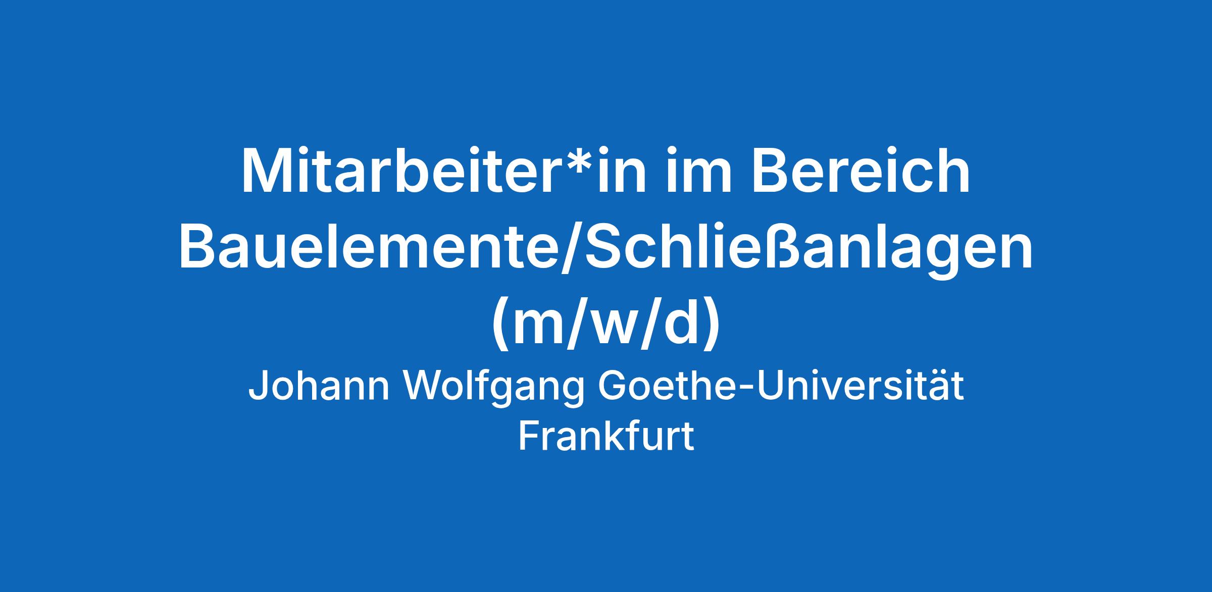 Im Bereich Immobilienmanagement, Abteilung Betrieb und Service Campus Bockenheim/Ginnheim/Westend, ist zur Verstärkung des Teams zum nächstmöglichen Zeitpunkt eine unbefristete Stelle eines*einer