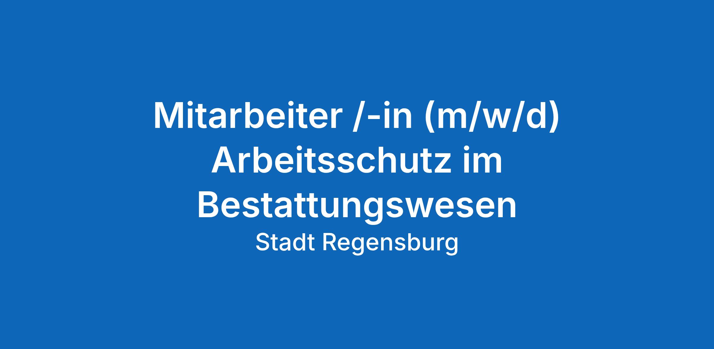 Gemeinsam mit der Stadt Regensburg die Zukunft gestalten! Wir suchen für das Bürgerzentrum, Abteilung Bestattungswesen, eine/-n Mitarbeiter/-in (m/w/d) für den Arbeitsschutz.