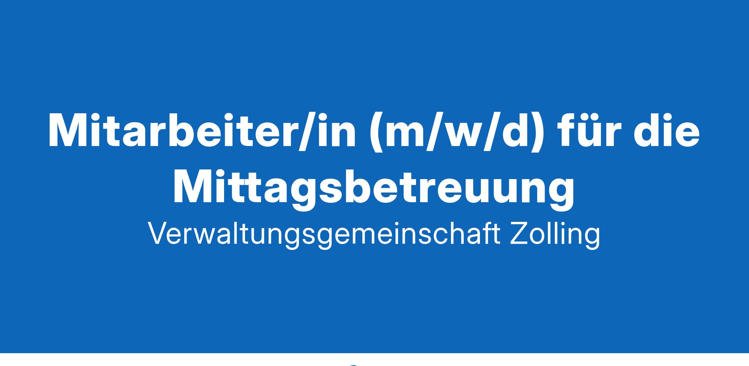 für die Mittagsbetreuung unbefristet in Teilzeit für mind. 25 Wochenstunden an 5 Tagen. Ihre Bewerbung senden Sie bitte per Mail bis spätestens 16. 02.2025 an folgende E-Mail-Adresse: personal@vg-zolling.de Für Rückfragen steht Ihnen gerne der