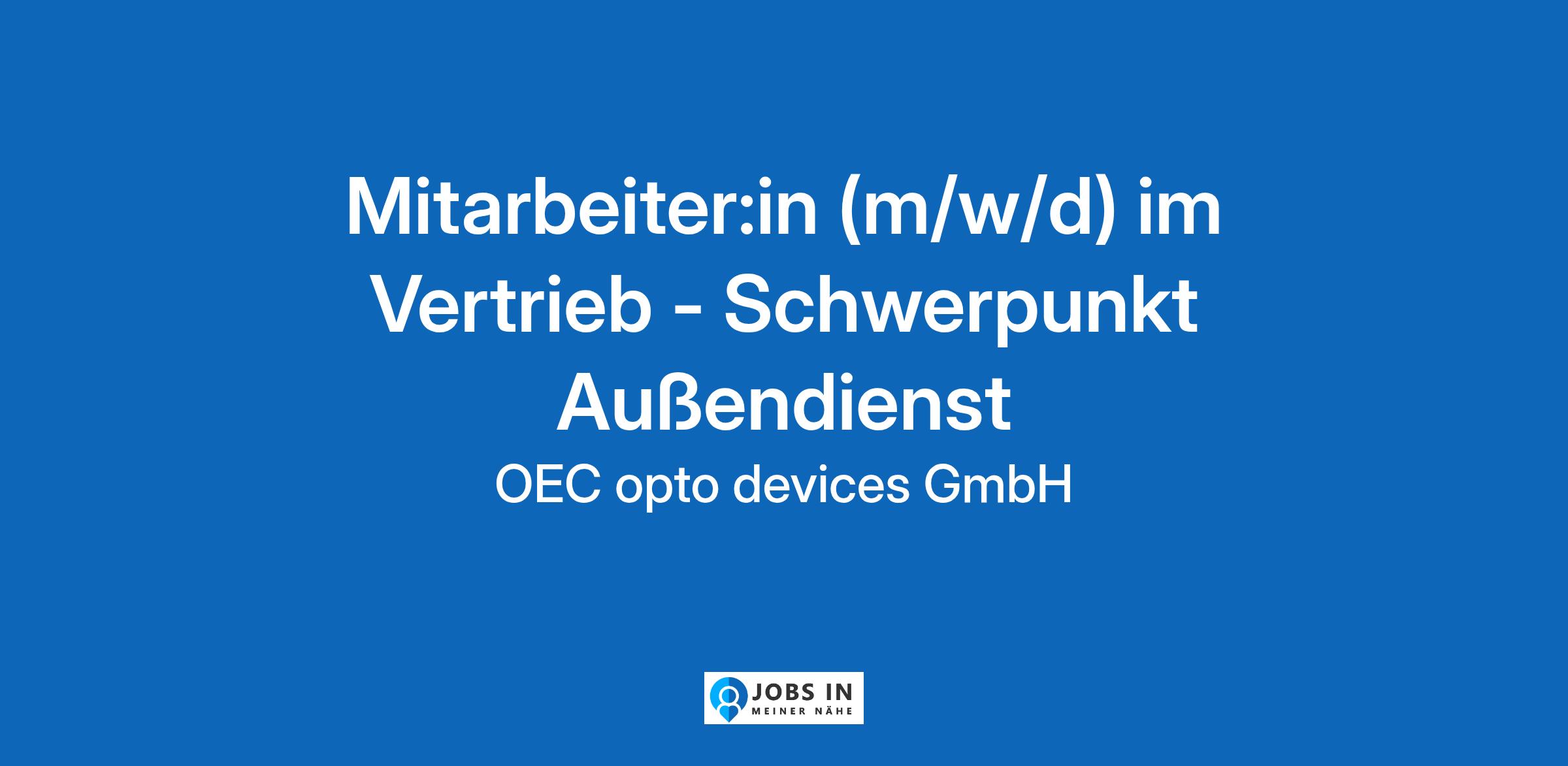 Vertrieb ist deine Leidenschaft – besonders im direkten Kundenkontakt? Dann komm zu uns ins Team! Mitarbeiter:in (m/w/d) im Vertrieb – Schwerpunkt Außendienst Standort: Stocksee bei Kiel | Reisetätigkeit deutschlandweit Die OEC opto devices GmbH ist seit über 20 Jahren Spezialist für Optoelektron... In sicherer Weise;Begeisterung;Angebotsabwicklung;Englisch;Vertrieb;Optoelektronik;Kundenbeziehung;Fachmesse;Kommunikation;Vertrieb;Reisen;Außendienst;Auftragsabwicklung;Selbstbewusstsein;Elektroniktechnik;Deutsch;Reisebereitschaft;Neue Kunden;Vertragsabschluss;Kundenkommunikation Original Stellenanzeige auf StepStone.de – Jetzt Jobagent bei StepStone einrichten und Traumjob finden! https://bit.ly/2KOagYD Mehr Informationen zu Arbeitgebern, Gehaltsdaten und Karrieretipps finden Sie auf StepStone.de
