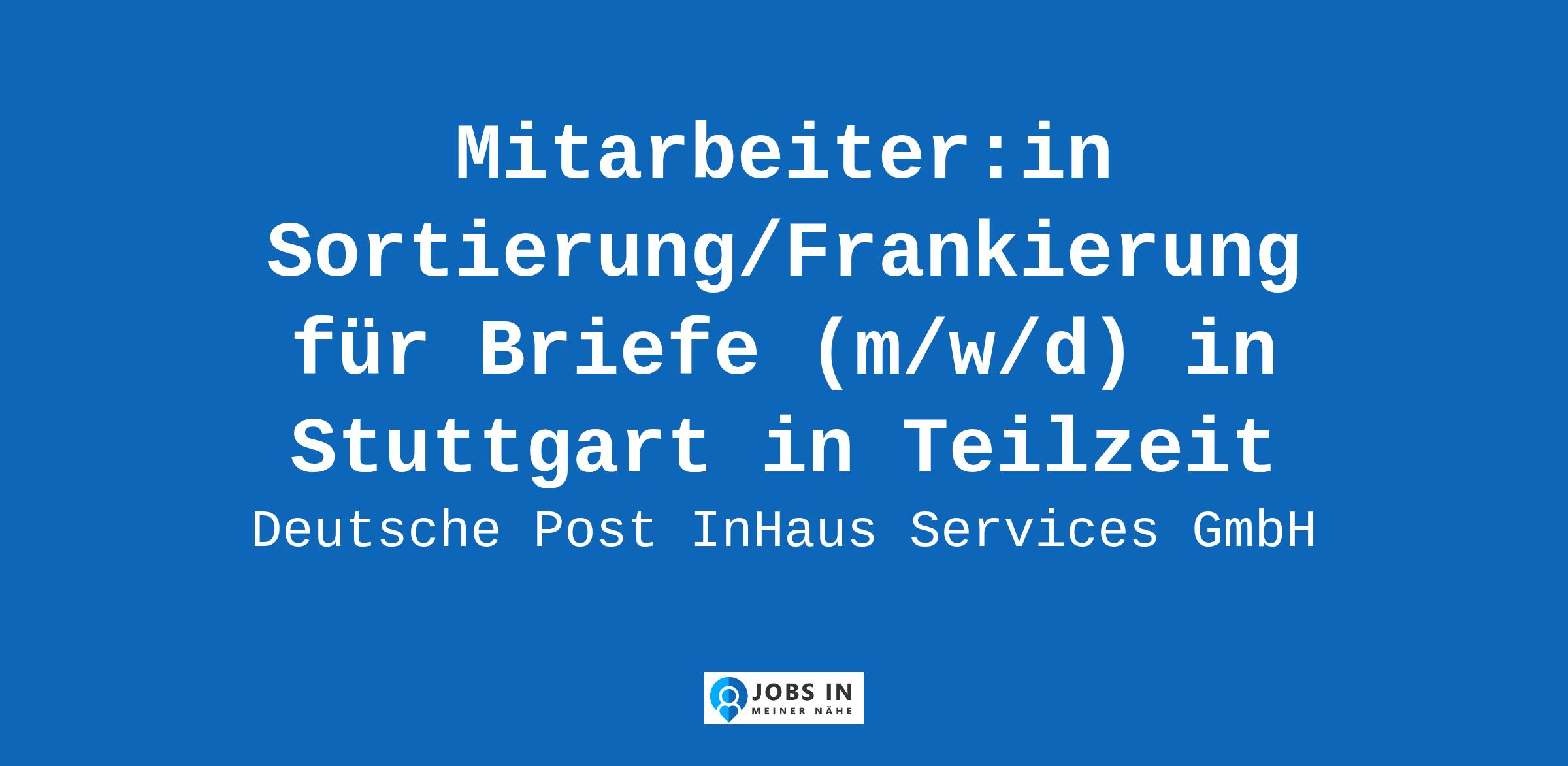 Bewirb dich jetzt ganz ohne Lebenslauf! Jeden Mittwoch um 13:00 Uhr Probearbeiten mit möglicher Einstellung Stundenlohn: 14,12 Euro Wann? Mo.-Fr. zwischen 15:30-20:30Uhr Wo? Höhenstraße 24, 70736 Fellbach Werde jetzt Mitarbeiter:in Sortierung/Frankierung für Briefe (m/w/d) in Teilzeit in Stutt... Sortieren;Herzlich;Firmenkunden;Zählen;Deutsch;Flexibilität Original Stellenanzeige auf StepStone.de – Jetzt Jobagent bei StepStone einrichten und Traumjob finden! https://bit.ly/2KOagYD Mehr Informationen zu Arbeitgebern, Gehaltsdaten und Karrieretipps finden Sie auf StepStone.de