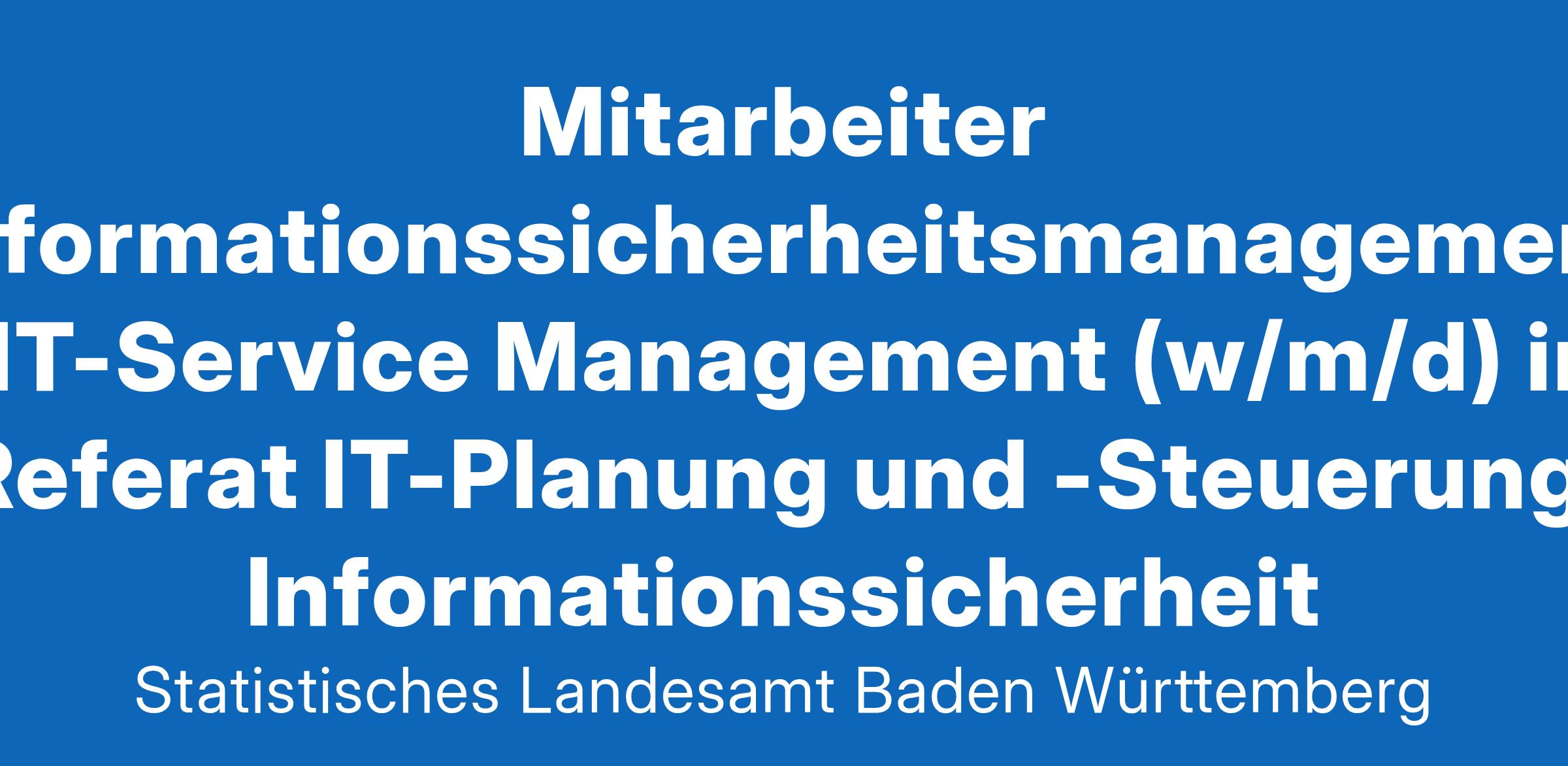 Mitarbeiter Informationssicherheitsmanagement / IT-Service Management (w/m/d) im Referat » IT-Planung und -Steuerung, Informationssicherheit «