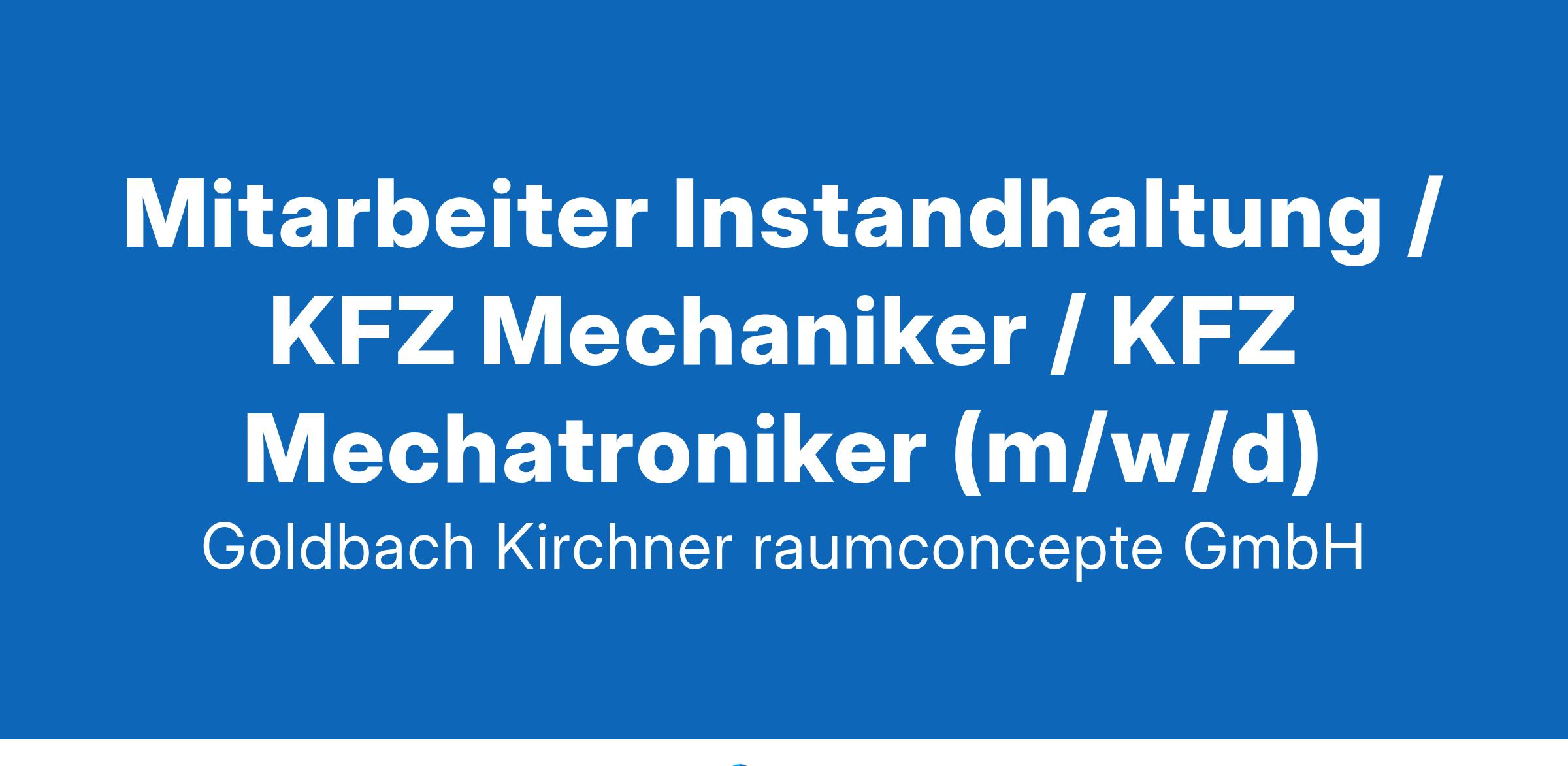 Goldbach Kirchner raumconcepte GmbH Mitarbeiter Instandhaltung / KFZ Mechaniker / KFZ Mechatroniker (m/w/d) Geiselbach Über Goldbach Kirchner Wir sind ein innovatives Familienunternehmen, spezialisiert auf hochwertigen Innenausbau, Trennwand-Systeme und Raumlösungen. Von der ersten Idee bis zur finalen Umsetzung finden Kunden in uns einen kompetenten Partner, der ihre Vorstellung und Visionen umsetzt. „Made in GERMANY“ und mit Fokus auf Nachhaltigkeit und Zuverlässigkeit. Seit 1922 am Markt sind wir inzwischen an drei Standorten mit rund 180 Mitarbeiter:innen vertreten. KFZ Mechaniker / KFZ Mechatroniker / Mitarbeiter Instandhaltung (m/w/d) am Standort Geiselbach / in Vollzeit Ihre Aufgaben Zuständig für unsere LKW und PKW Flotte sowie verschiedene Sondergeräte Prüfung, Wartung, Instandsetzung und Pflege unseres Fuhrparkes Einhaltung von Sicherheitsrichtlinien und Rechtsvorschriften Bei Interesse: Durchführung von Kontrolltätigkeiten und Rundgängen an technischen Anlagen (Sicht- und Funktionskontrollen) in unseren Gebäuden Instandsetzung, Wartung und Prüfung von Sondergeräten Durchführung von Fremdinstandsetzung Erledigung von Entsorgungs- und Transporttätigkeiten Ihr Profil Erfolgreich abgeschlossene Berufsausbildung KFZ-Mechaniker, KFZ-Mechatroniker, NFZ-Mechatroniker (m/w/d) oder handwerklichen Beruf mit einschlägigen Erfahrungen Eiserner Wille, Probleme selbstständig zu lösen Gutes technisches Verständnis, handwerkliches Geschick und zielorientierte Arbeitsweise Ausgeprägte Serviceorientierung und Fähigkeit zur selbstständigen Tätigkeit Bereitschaft zu abweichenden Arbeitszeiten Freundliches, korrektes und sicheres Auftreten sowie Gefasstheit bei komplexen Problemstellungen Von Vorteil: Staplerschein Führerschein Klasse B und C Ihre Benefits GK Family: Ob gemeinsame Frühstückspausen oder After-Work-Events - uns zeichnet eine familiäre, wertschätzende, offene und hilfsbereite Arbeitskultur aus Arbeitsplätze zum Wohlfühlen: Moderne, helle und ergonomische Arbeitsplätze sind für uns eine Selbstverständlichkeit Weiterbildungsmöglichkeiten: Sie sind motiviert sich beruflich weiterzuentwickeln und Ihre Fähigkeiten zu erweitern? Wir unterstützen Sie dabei! Natürlich: Attraktive Vergütung Obendrauf: Überschussbeteiligung, großzügige Urlaubsregelung, Vermögenswirksame Leistungen, Benefitkarte, Kaffee und Wasser zur freien Verfügung, JobRad & saisonal: frisch gepresster Orangensaft Sind Sie bereit, gemeinsam mit uns in eine erfolgreiche Zukunft zu starten? Dann freuen wir uns auf Ihre vollständigen Bewerbungsunterlagen, gerne auch als Onlinebewerbung an bewerbung[AT]goldbachkirchner.de. Goldbach Kirchner raumconcepte GmbH