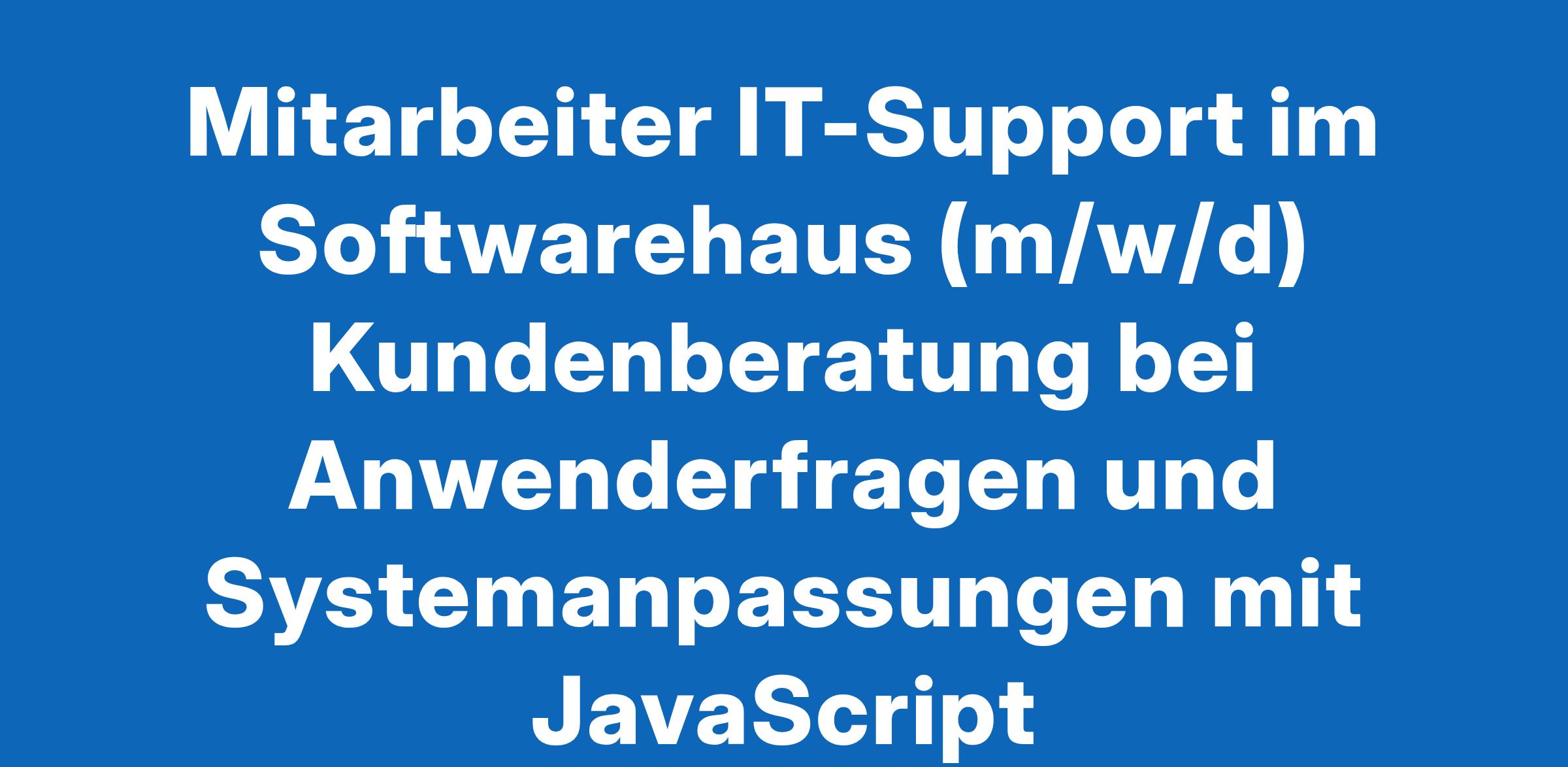 Mitarbeiter IT-Support im Softwarehaus (m/w/d) Kundenberatung bei Anwenderfragen und Systemanpassungen mit JavaScript