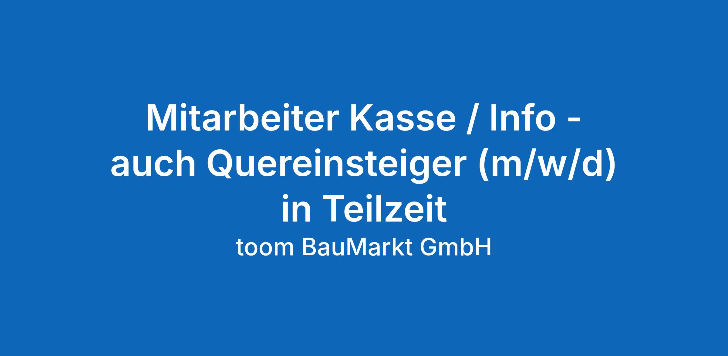 Mitarbeiter Kasse / Info - auch Quereinsteiger (m/w/d) in Teilzeit