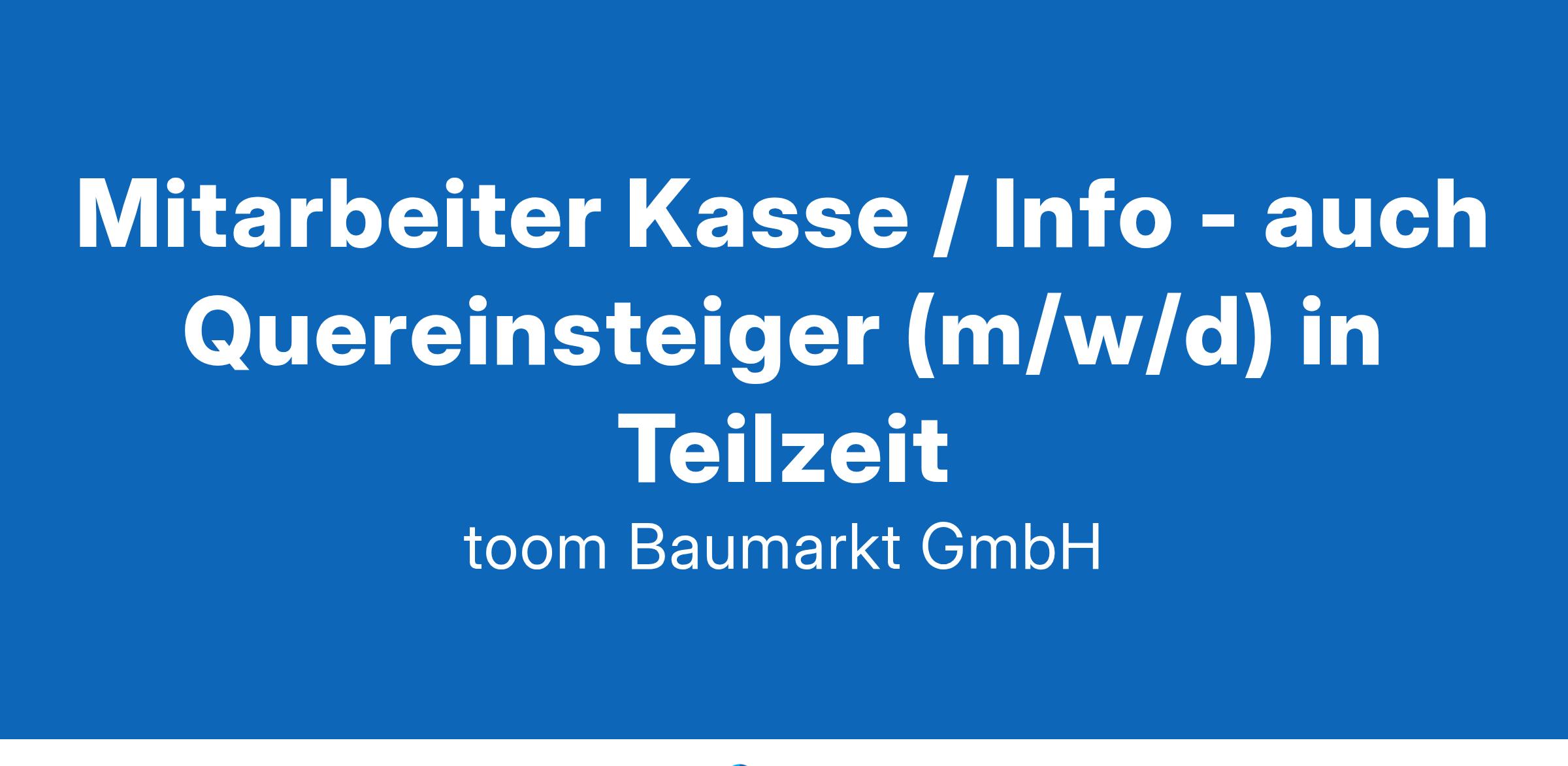 68723 SchwetzingenDeine Aufgaben:Freundliche Begrüßung, Bedienung und Verabschiedung unserer Kund:innenReibungslose und inventursichere Abwicklung der Kassiervorgänge und vertrauensvoller Umgang mit ZahlungsmittelnUmsetzung unserer Serviceleistungen, z.B. Geräte- und Transporterverleih u. Bearbeitung von OnlinereservierungenBearbeitung von Reklamationen, Garantien und RetourenBeantwortung von Anfragen unserer Kund:innen sowie mögliche Weiterleitung an Kolleg:innenPflege und ansprechende Präsentation des Kassenbereichs sowie Nachräumen von WarenDas bringst du mit:Erfahrungen im Handel, z.B. als Kaufmann/Kauffrau im Einzel-/Großhandel (m/w/d), Kassierer:in oder als Quereinsteiger:in aus einer anderen BrancheFreude am direkten Kontakt mit Kund:innen, Lösungsorientierung und OrganisationsfähigkeitEine sorgfältige, strukturierte und ebenso zügige ArbeitsweiseEinen sicheren Umgang mit WarenwirtschaftssystemenDas bieten wir dir:Faire Bezahlung - ein Gehalt, angelehnt an den Einzelhandelstarif des jeweiligen Bundeslandes zzgl. Urlaubs- und WeihnachtsgeldWork-Life-Balance - 6 Wochen Jahresurlaub, eine gute Planbarkeit deiner Arbeitszeit sowie die Vereinbarkeit von Beruf, Familie und Privatleben (z.B. Elternzeit, Sabbatical, Pflege-Auszeit etc.)Geburtstagsfrei - wir schenken dir einen zusätzlichen Urlaubstag zu deinem GeburtstagEinen sicheren Arbeitsplatz - als Teil der REWE Group unterstützen wir dich mit vielen Sozialleistungen, wie der betrieblichen Altersvorsorge, einem JobRad etc.Eine strukturierte Einarbeitung - damit du toom und deine Aufgaben schnell kennenlernstVielfältige Weiterbildungsangebote - in Präsenz und per E-LearningGute Karrieremöglichkeiten - für dich und deine individuelle EntwicklungDeine Gesundheit ist uns wichtig - vielfältige Gesundheits- und Sportangebote sowie eine gute VorsorgeAttraktive Vergünstigungen - eine Rabattkarte für den Einkauf bei toom, REWE und PENNY sowie zahlreiche Preisnachlässe in Onlineshops, Fitnessstudios etc.Vielfalt und Toleranz - füreinander einstehen und sozial miteinander umgehen ist unser PrinzipWir freuen uns sehr auf deine Bewerbung. Bitte reiche diese ausschließlich digital ein. Im Anschluss an deine Bewerbung kommen wir zeitnah per E-Mail oder telefonisch auf dich zu.