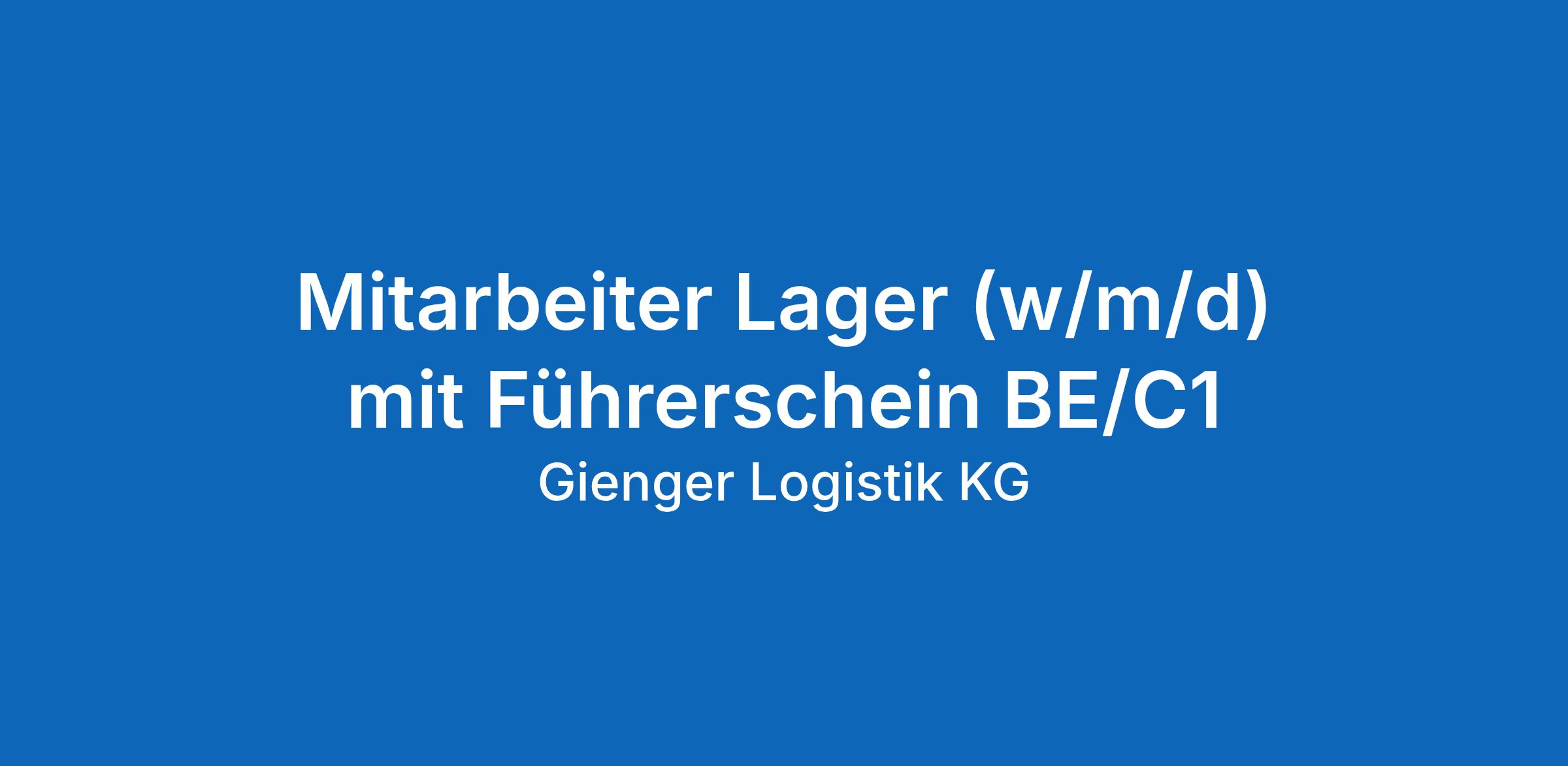 Bewirb Dich jetzt unter Angabe der Ref. -Nr. YF-42713 bei der GIENGER LOGISTIK KG