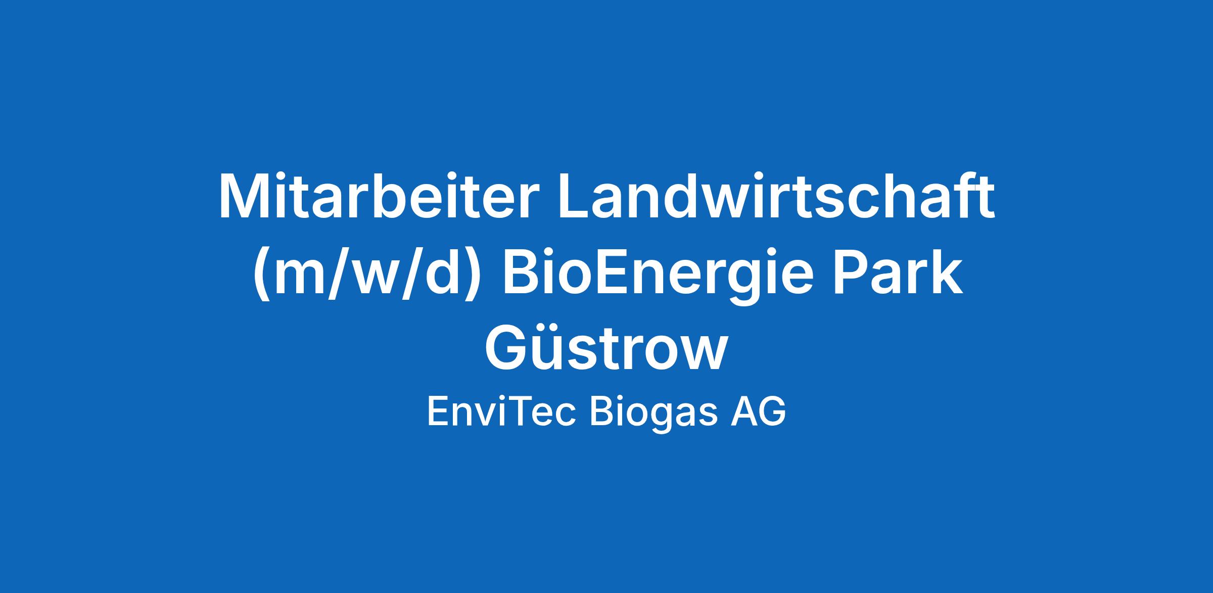 Die EnviTec Biogas AG ist ein führendes Unternehmen im Bereich der erneuerbaren Energien mit rund 700 Mitarbeitenden und Fokus auf die internationale Biogasbranche. Kontinuierliche Innovationen und eine fortschrittliche Unternehmenskultur machen die EnviTec Biogas zu einem starken und verlässlichen Arbeitgeber in einer wachsenden Zukunftsbranche. Für unseren BioEnergie Park in 18273 Güstrow suchen wir zum nächstmöglichen Zeitpunkt einen Mitarbeiter Landwirtschaft (m/w/d).