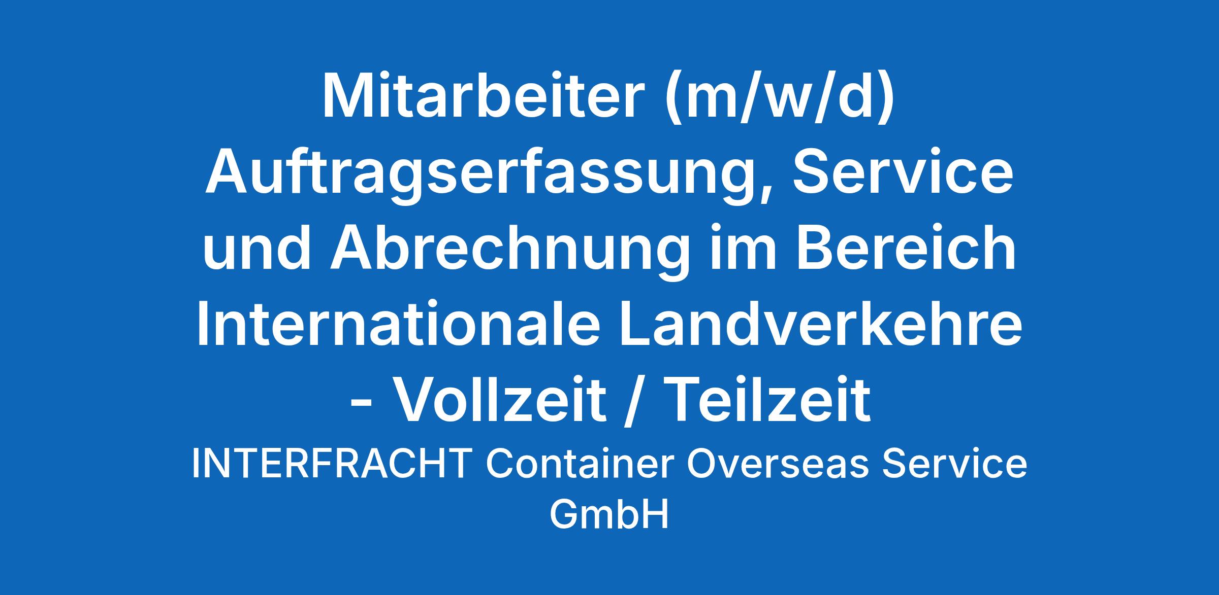 Mitarbeiter (m/w/d) Auftragserfassung, Service und Abrechnung im Bereich Internationale Landverkehre