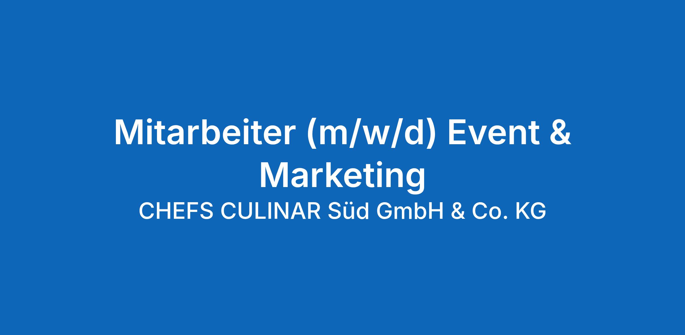 Werde ein Teil von CHEFS CULINAR und unterstütze uns in unserer neuen Niederlassung in Pilsach als Mitarbeiter (m/w/d) Event & Marketing in Vollzeit (38,5 Std./Woche). In dieser Position unterstützt du das Vertriebsteam im Bereich Event & Marketing und trägst aktiv dazu bei, unsere Markenpräsenz zu stärken. Mit deiner Kreativität, Organisationstalent und Leidenschaft für Marketing begleitest du unsere Veranstaltungen, Messen und internen Aktionen und sorgst für einen professionellen Auftritt unseres Unternehmens. Für diese Position suchen wir gleich mehrere Mitarbeitende – werde Teil eines großen, motivierten Teams! Geplanter Starttermin: 01.09.26.
