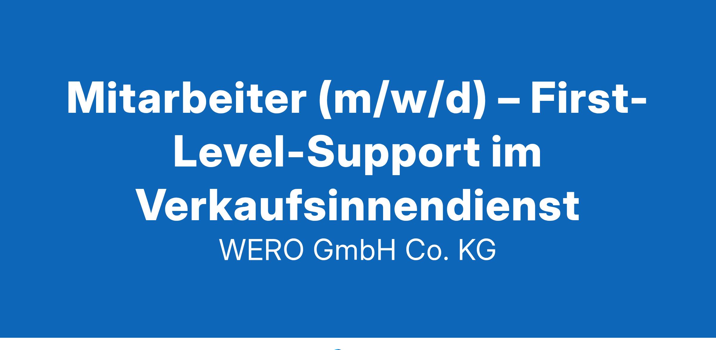 Bei WERO – Best in Work.Life.Safety. – dreht sich alles um den Schutz und Erhalt der Gesundheit von Menschen. Seit über 65 Jahren sind wir ein innovatives und dynamisch geführtes Familienunternehmen, das Unternehmen aller Branchen und Größen deutschlandweit und in Österreich betreut. Unser Ziel ist es, die Arbeitswelt sicherer und gesünder zu gestalten. Werde jetzt Teil unseres familiengeführten, mittelständischen Unternehmens und arbeite mit uns am gemeinsamen Erfolg. Mitarbeiter (m/w/d) – First-Level-Support im Verkaufsinnendienst