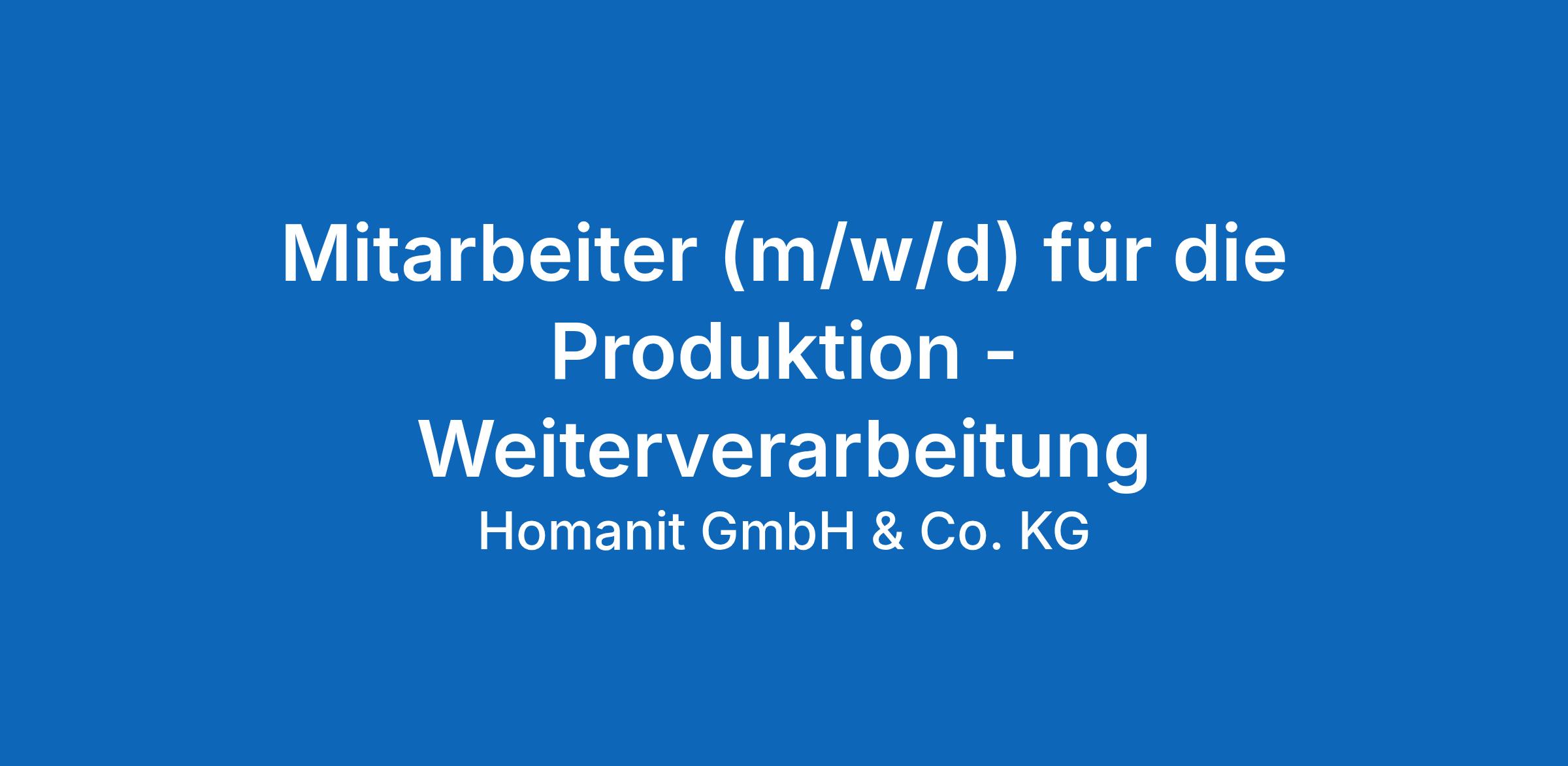 Mitarbeiter (m/w/d) für die Produktion - Weiterverarbeitung