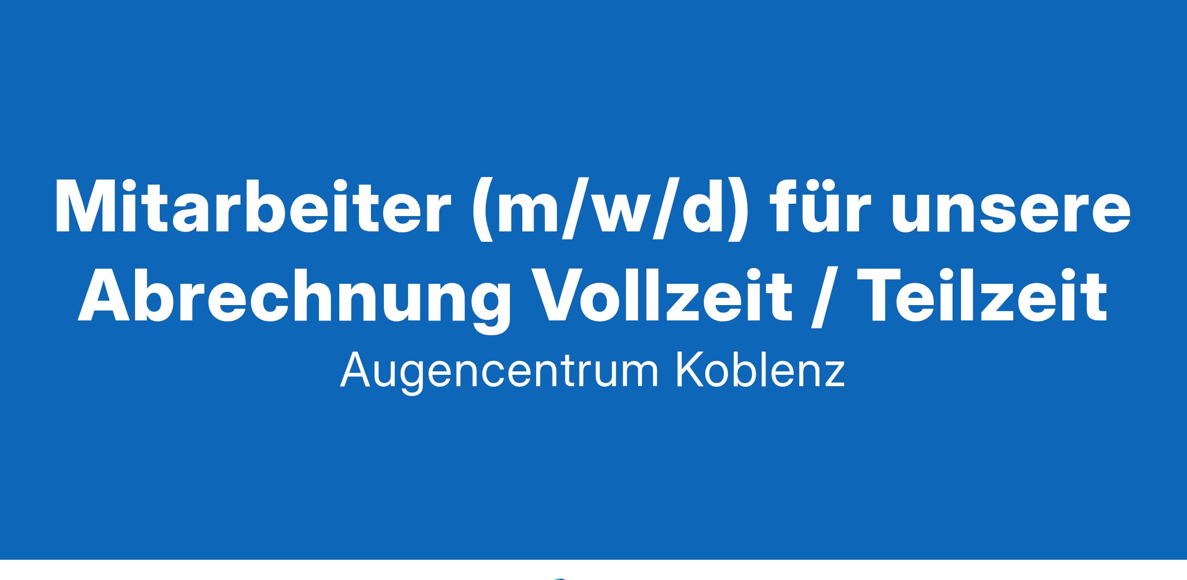 Das Augencentrum Koblenz und die mit uns assoziierte Klinik für Augenheilkunde am Stiftungsklinikum Mittelrhein (Evang. Stift St. Martin) sind das größte und führende Augeninstitut am Mittelrhein, das seit mehr als 50 Jahren in kollegialer Zusammenarbeit geführt wird. Durch die Nähe zum Hauptbahnhof sind wir mit öffentlichen Verkehrsmitteln aller Art gut zu erreichen. Wir suchen zum nächstmöglichen Zeitpunkt Mitarbeiter (m/w/d) für unsere Abrechnung in Voll- oder Teilzeit Dein Profil: Du verfügst über eine kaufmännische Ausbildung, eine Ausbildung im Gesundheitswesen oder hast bereits Erfahrungen im Bereich der Abrechnung Du hast Erfahrung in der Kassen- und Privatärztlichen Abrechnung Du hast gute PC-Kenntnisse und ein schnelles Auffassungsvermögen Deine Aufgaben: Du führst die Abrechnung von Leistungen nach GOÄ (Gebührenordnung für Ärzte) und EBM (Einheitlicher Bewertungsmaßstab) durch. Du prüfst und korrigierst Abrechnungsunterlagen. Du erstellst und bearbeitest Rechnungen. Du kommunizierst mit Krankenkassen und Patienten bezüglich Abrechnungsfragen. Du unterstützt bei der Klärung von offenen Forderungen. Du übernimmst allgemeine administrative Aufgaben im Bereich Abrechnung und Verwaltung. Wir bieten dir: Einen abwechslungsreichen Arbeitsplatz mit guter Einarbeitung in einem zukunftsorientierten und expandierenden Unternehmen Regelmäßige Weiterbildungen. Diese sind für uns selbstverständlich Ein harmonisches Team: Teamfähigkeit ist bei uns keine Floskel. Wir leben Team! Ein attraktives, leistungsbezogenes Gehalt 13. Monatsgehalt Homeoffice nach Einarbeitung (max. 1-2 Tage pro Woche) vermögenswirksame Leistungen Betriebliche Altersvorsorge Jobticket Kostenlose Getränke Betriebsfeiern Haben wir dein Interesse geweckt? Dann freuen wir uns über deine schriftliche Bewerbung OHNE Bewerbungsmappe, da keine Rücksendung der Unterlagen erfolgt, gerne aber auch per Mail in EINEM Dokument. Kontakt Tel.: 0261-988700 Fax: 0261-9887030 bewerbung@augencentrum-koblenz.de Standort Koblenz Augencentrum Koblenz Bahnhofplatz 6 56068 Koblenz www.augencentrum-koblenz.de