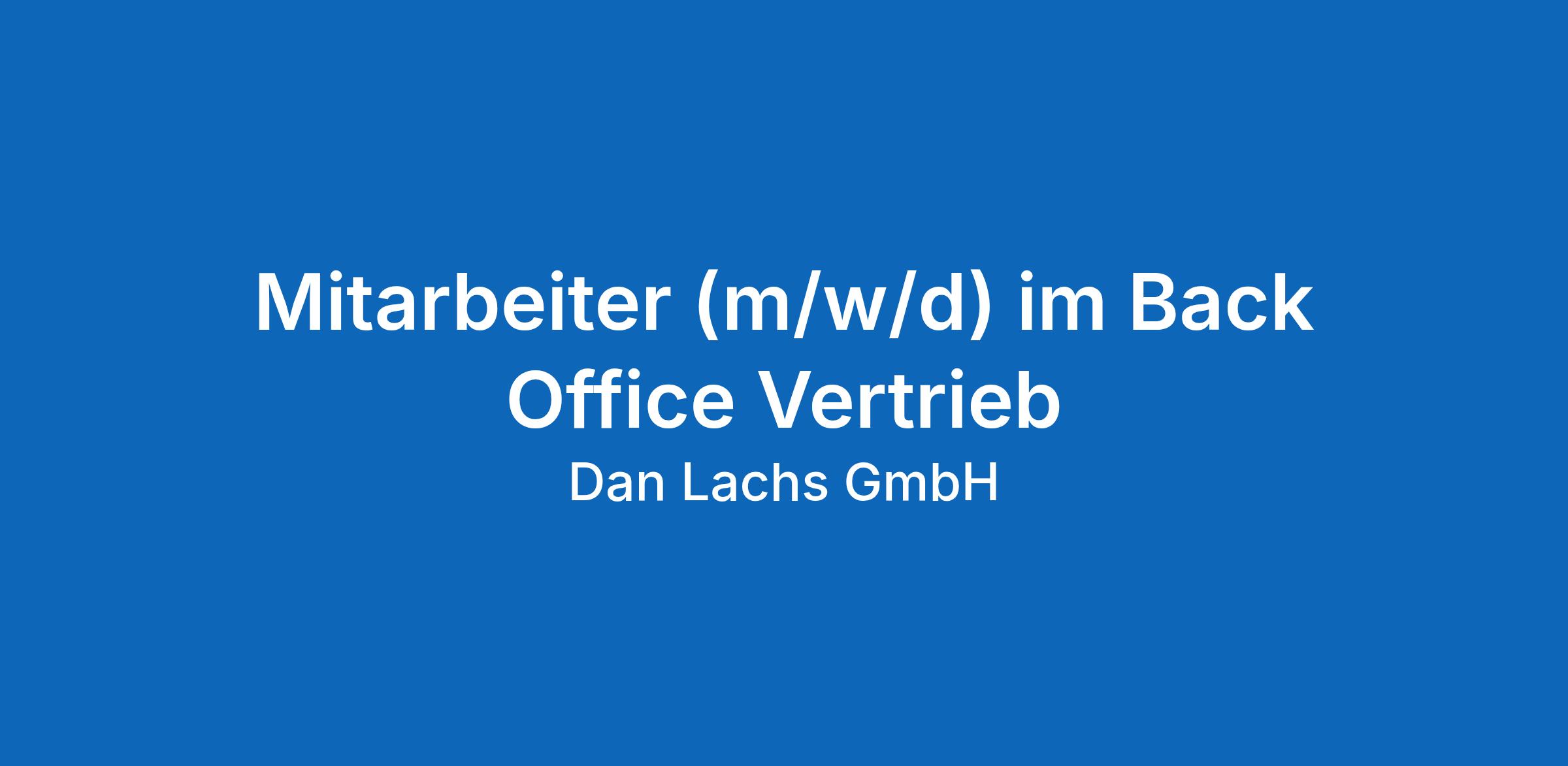 Mitarbeiter (m/w/d) Back Office Vertrieb
