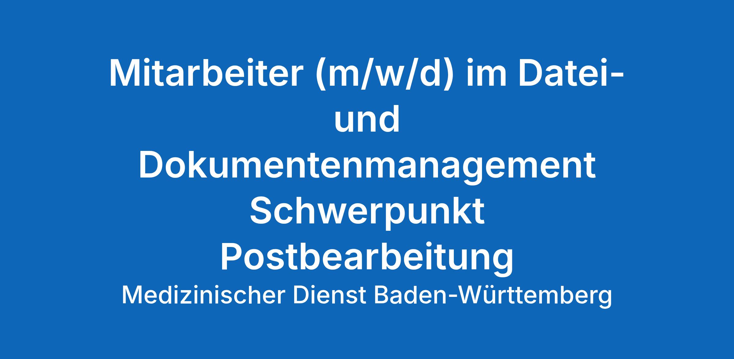 Mitarbeiter (m/w/d) im Datei- und Dokumentenmanagement Schwerpunkt Postbearbeitung