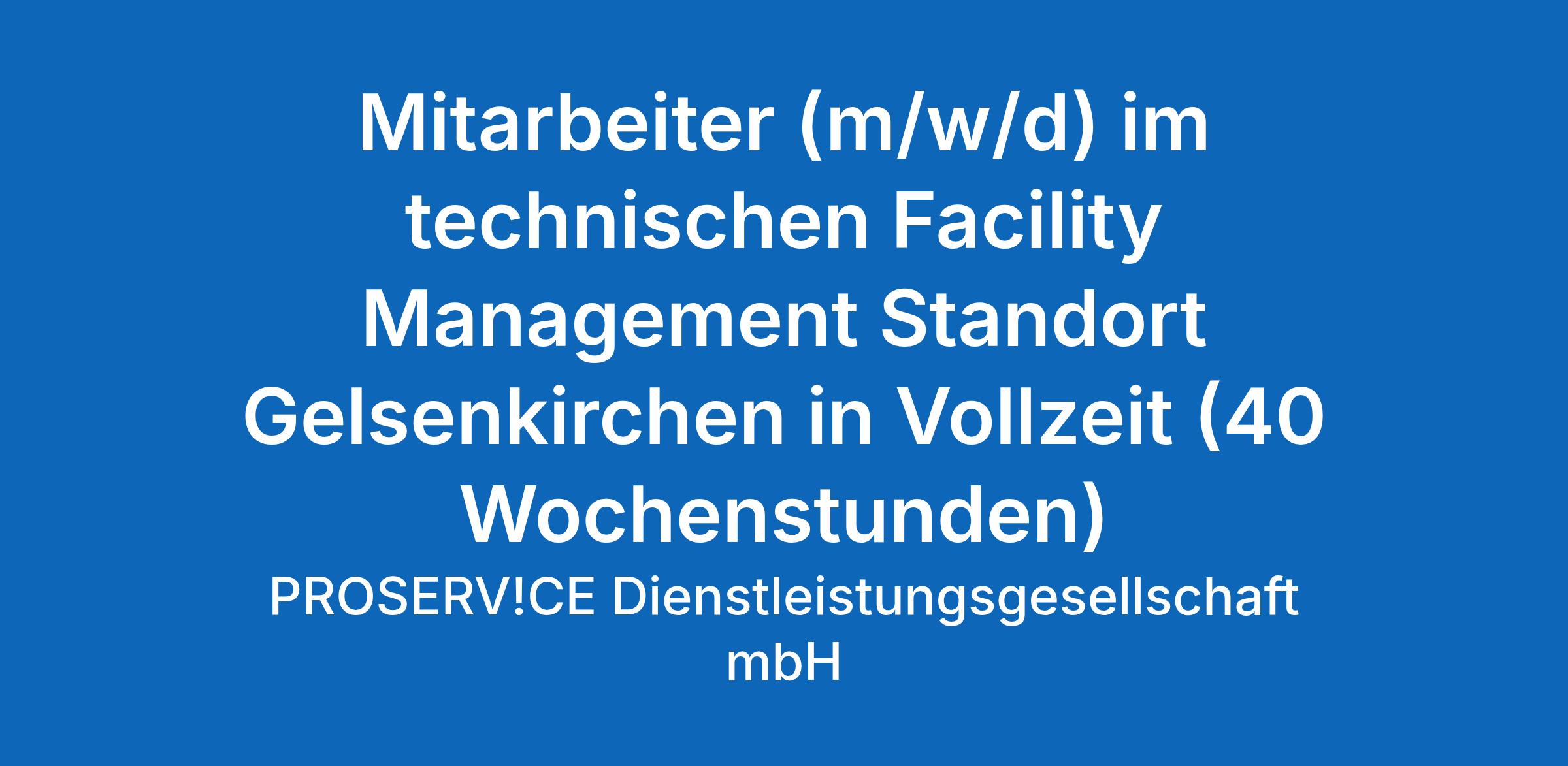 Ab dem 01.07.2026 suchen wir einen Mitarbeiter / eine Mitarbeiterin in Vollzeit (40 Wochenstunden) für unser technisches Facility Management am Standort Gelsenkirchen.