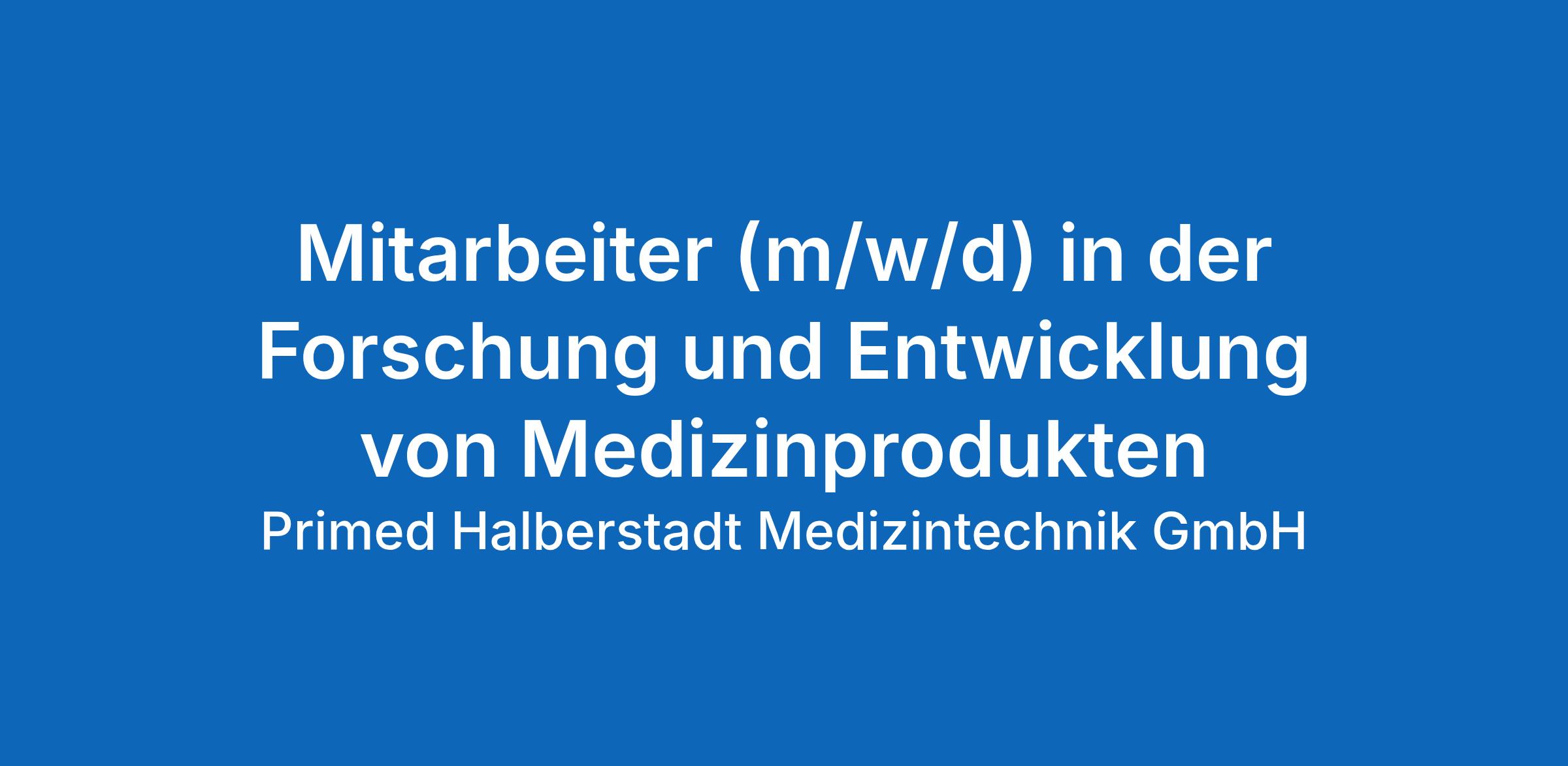 Zur Verstärkung unseres Teams suchen wir ab sofort am Standort Halberstadt Mitarbeiter (m/w/d) in der Forschung und Entwicklung von Medizinprodukten