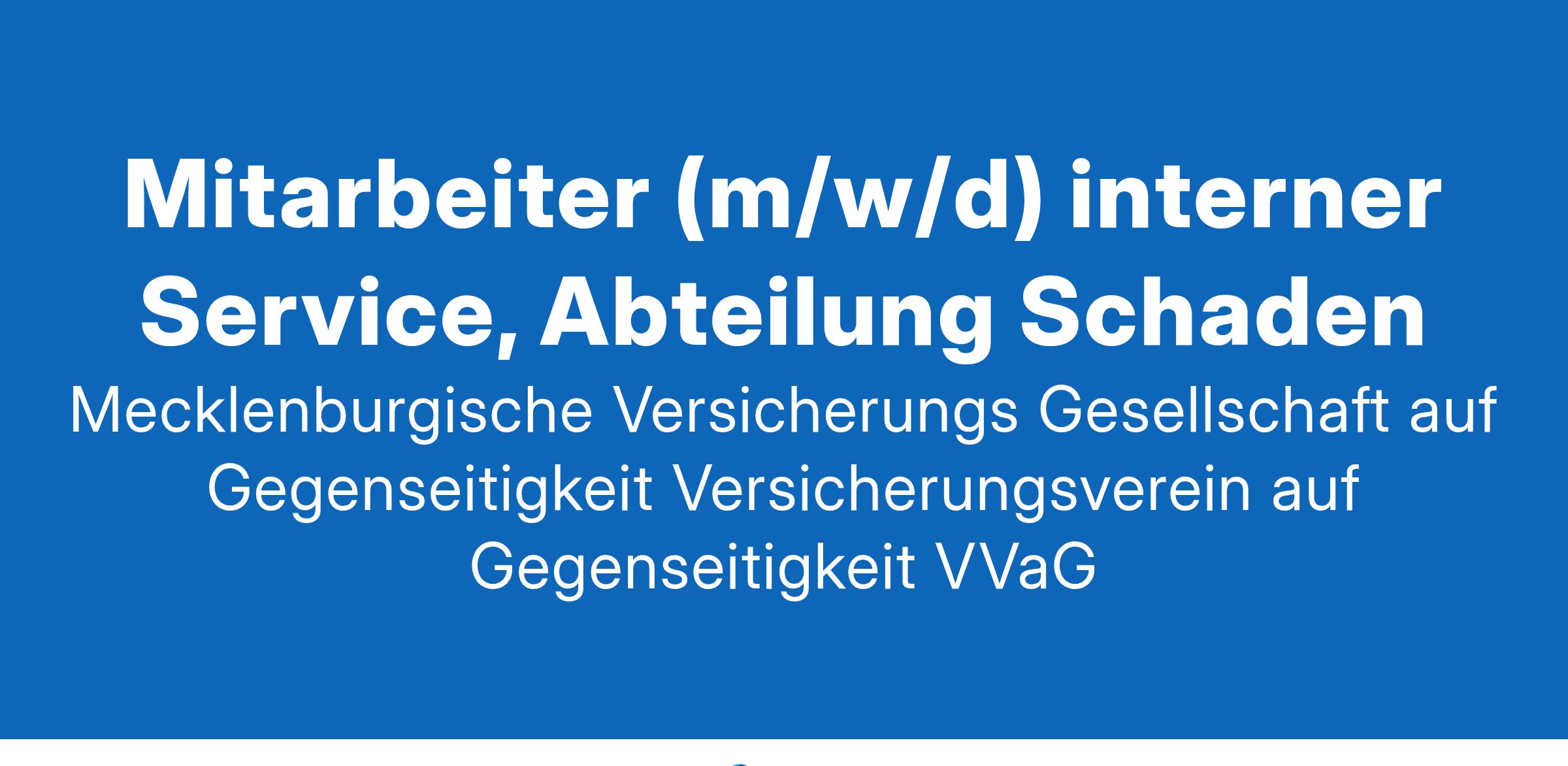 Wir sind die Mecklenburgische heute: Ein traditionsbewusstes Versicherungsunternehmen, das durch besonders engagierte Mitarbeiter (m/w/d) im Innen- und Außendienst bereits über 225 Jahre erfolgreich am Markt bestehen konnte. Für die Mecklenburgische von morgen suchen wir begeisterte Menschen, die gemeinsam mit uns mutig die Ärmel hochkrempeln. Mit einer offenen Unternehmenskultur, transparenter Kommunikation und verantwortungsvollen Projekten bieten wir den passenden Rahmen für Ihre tägliche Arbeit. Kommen Sie mit uns auf eine spannende Reise in die Zukunft. Mitarbeiter (m/w/d) interner Service in der Abteilung Schaden