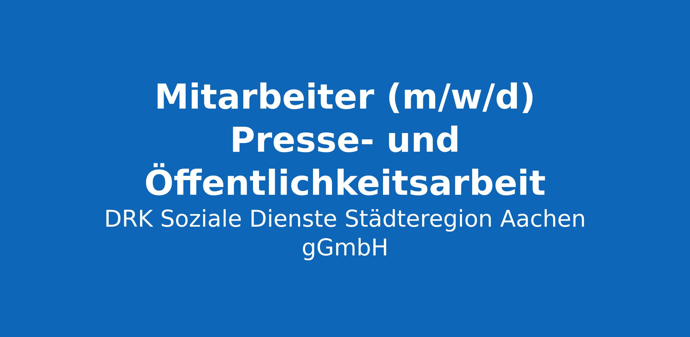 Wir, das DRK in der StädteRegion Aachen suchen schnellstmöglich einen Mitarbeiter (m/w/d) für die Presse- und Öffentlichkeitsarbeit in Vollzeit. Die Anstellung erfolgt zunächst befristet auf ein Jahr mit Option auf Übernahme in ein unbefristetes Arbeitsverhältnis.
