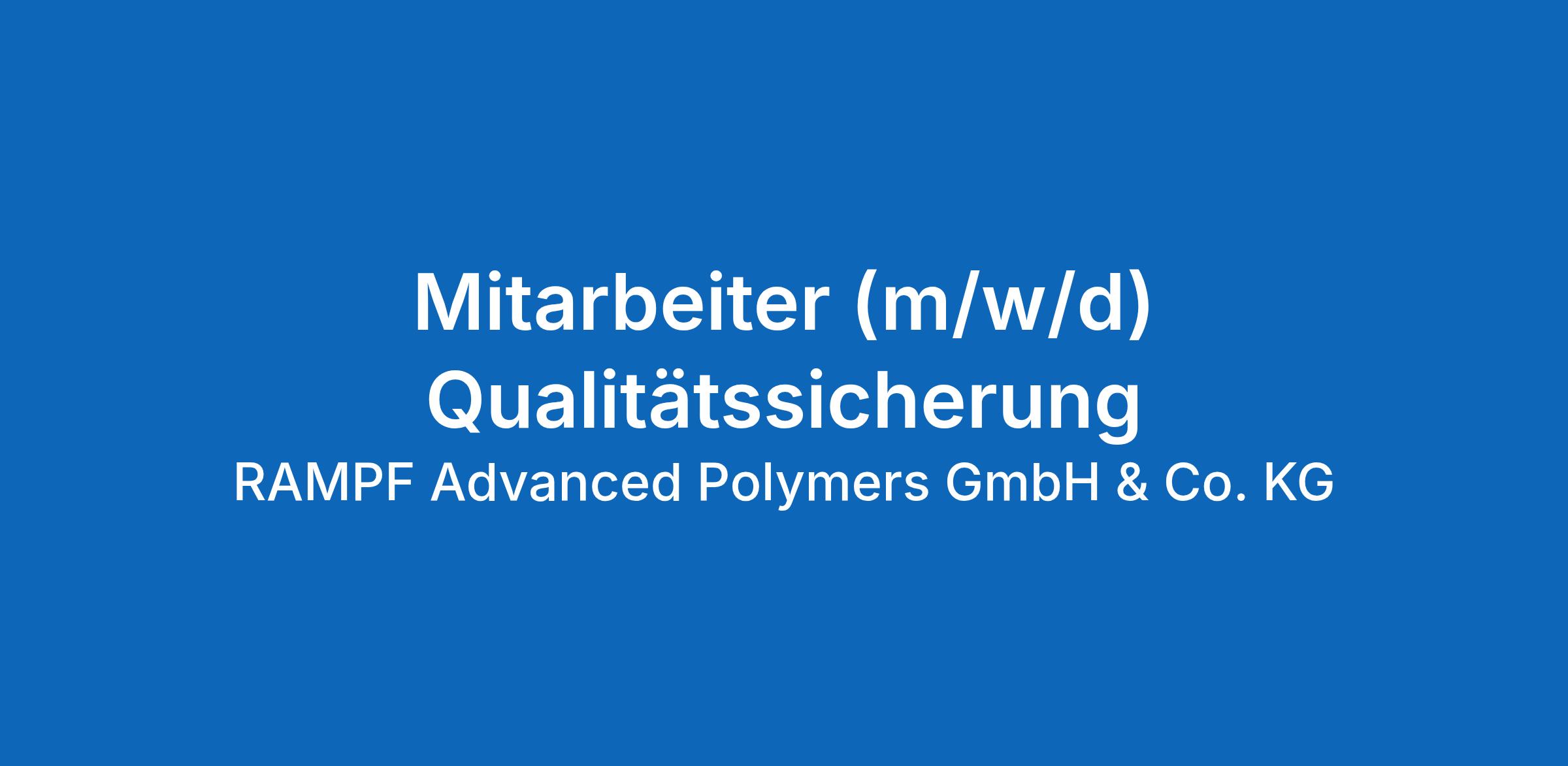 Qualität liegt Ihnen am Herzen. Uns auch. Kommen Sie zu RAMPF Advanced Polymers nach Grafenberg (bei Metzingen) und zeigen Sie uns Ihr Qualitätsbewusstsein als