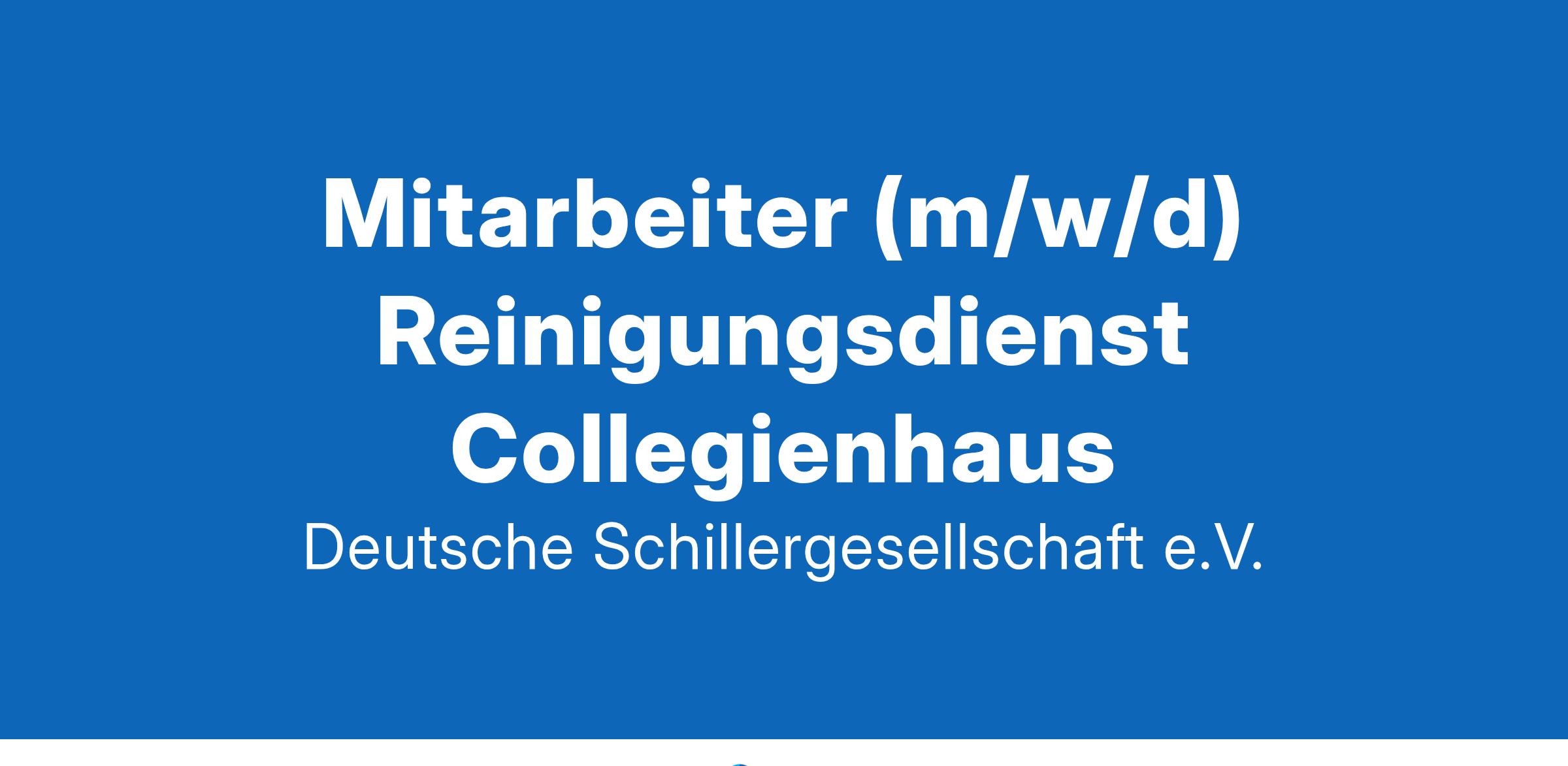 Zum nächstmöglichen Zeitpunkt suchen wir für die Abteilung Verwaltung einen Mitarbeiter (m/w/d) Reinigungsdienst Collegienhaus (TV-L E2, auf Minijob-Basis, befristet mit Option auf Verlängerung) Die Deutsche Schillergesellschaft e. V. ist Trägerin des Deutschen Literaturarchivs Marbach, einer der bedeutendsten Literaturinstitutionen weltweit. Es sammelt, bewahrt und erschließt Zeugnisse zur neueren deutschen Literatur, macht sie forschenden Gästen zugänglich und präsentiert sie in zwei Museen einer breiten Öffentlichkeit. Ihre Aufgaben: Reinigung der Gäste-Appartements und des Gemeinschaftsbereichs Ihr Profil: gründliches und gewissenhaftes Arbeiten offene, freundliche Umgangsformen Bewerbungen von schwerbehinderten Menschen werden bei gleicher Eignung bevorzugt berücksichtigt. Bewerbungen richten Sie bitte mit den unter www.dla-marbach.de/ueber-uns/stellenangebote genannten Unterlagen und unter Angabe der Kennziffer 25_07 bis zum 23.02.2025 an das Personalreferat: bewerbung@dla-marbach.de Deutsche Schillergesellschaft e. V. Deutsches Literaturarchiv Marbach www.dla-marbach.de/ueber-uns/stellenangebote Kontakt Deutsches Literaturarchiv Marbach Personalreferat Telefon +49 (0) 7144 / 848-204 Telefax +49 (0) 7144 / 848-290 E-Mail bewerbung@dla-marbach.de Nach Abschluss des Bewerbungsverfahrens werden sämtliche Unterlagen vernichtet. www.dla-marbach.de