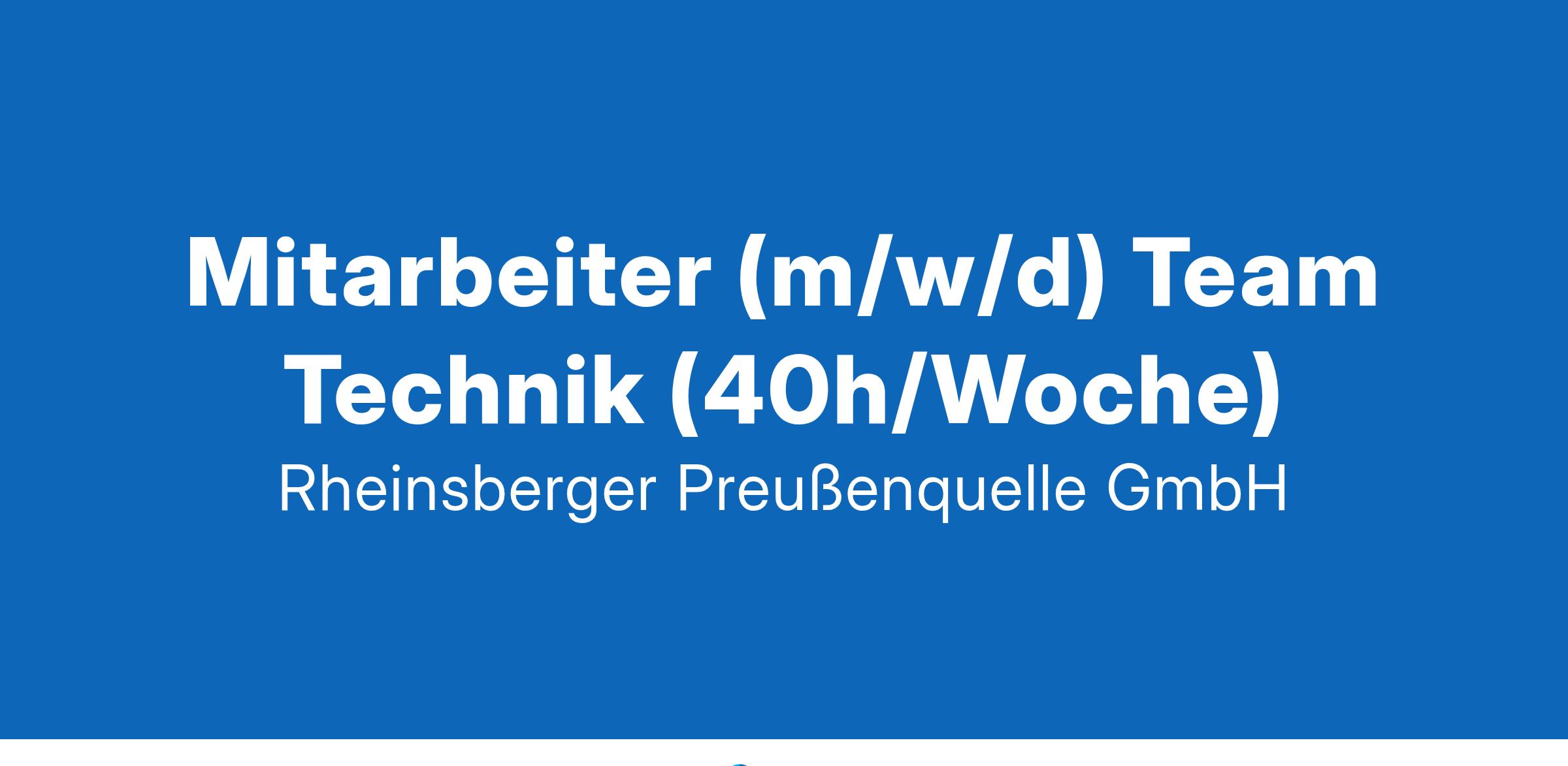 Weitere Informationen finden Sie auf www.preussenquelle.deJetzt bewerbenWir sind ein dynamischer Mineralbrunnen, der ganz auf ökologisch nachhaltiges Wirtschaften ausgerichtet ist. Mit viel Herzblut und Leidenschaft bringen wir unser kostbares Bio-Mineralwasser in den Vertrieb unserer regionalen Absatzmärkte. Aufgrund der gestiegenen Nachfrage nach regionalen & nachhaltigen Produktion im Handel und in der Gastronomie suchen wir zum nächstmöglichen Termin eine/einen Mitarbeiter*in für unser Team Technik in Vollzeit-Anstellung (40h/Woche).