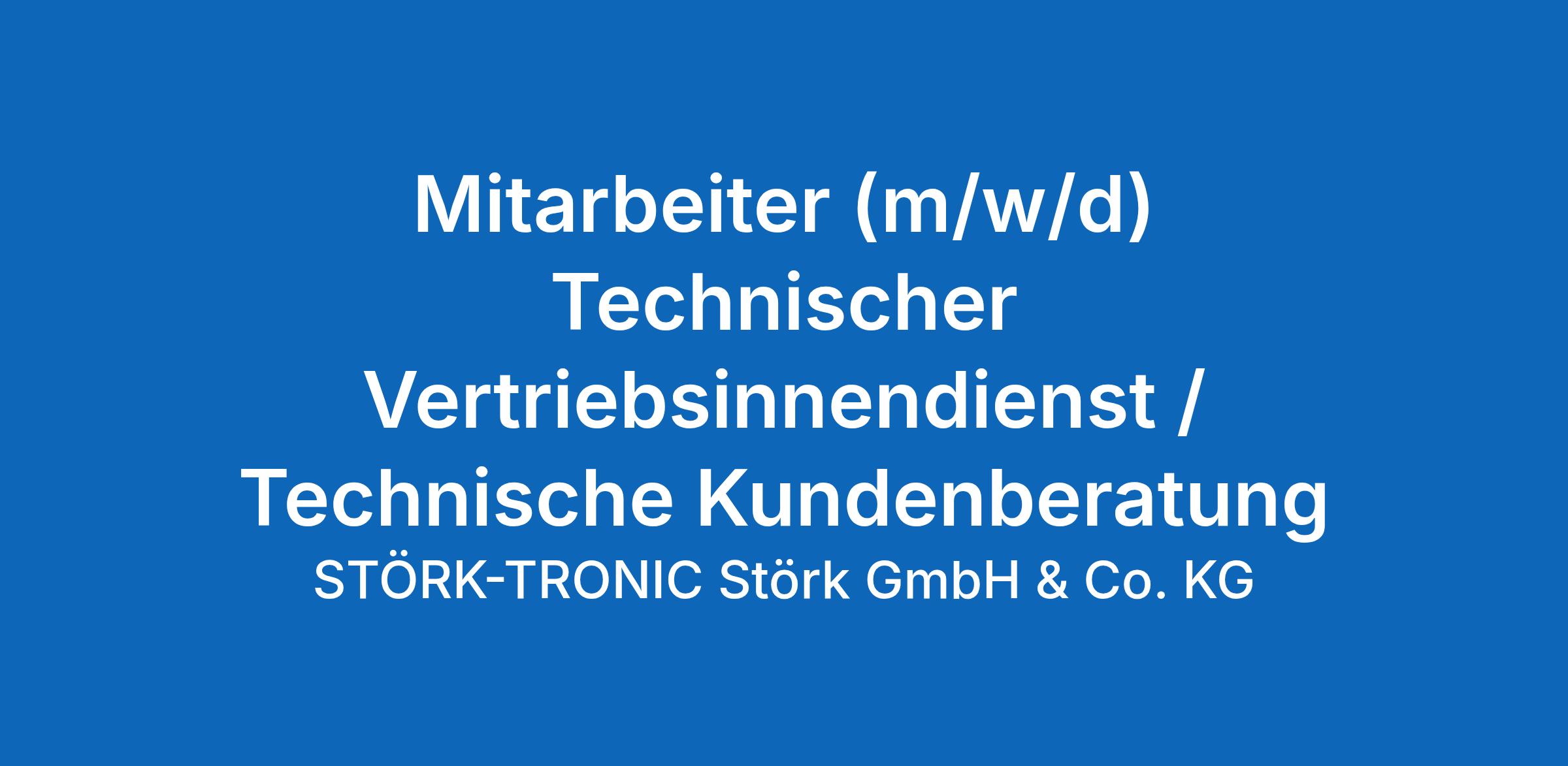 Mitarbeiter (m/w/d) Technischer Vertriebsinnendienst / Technische Kundenberatung