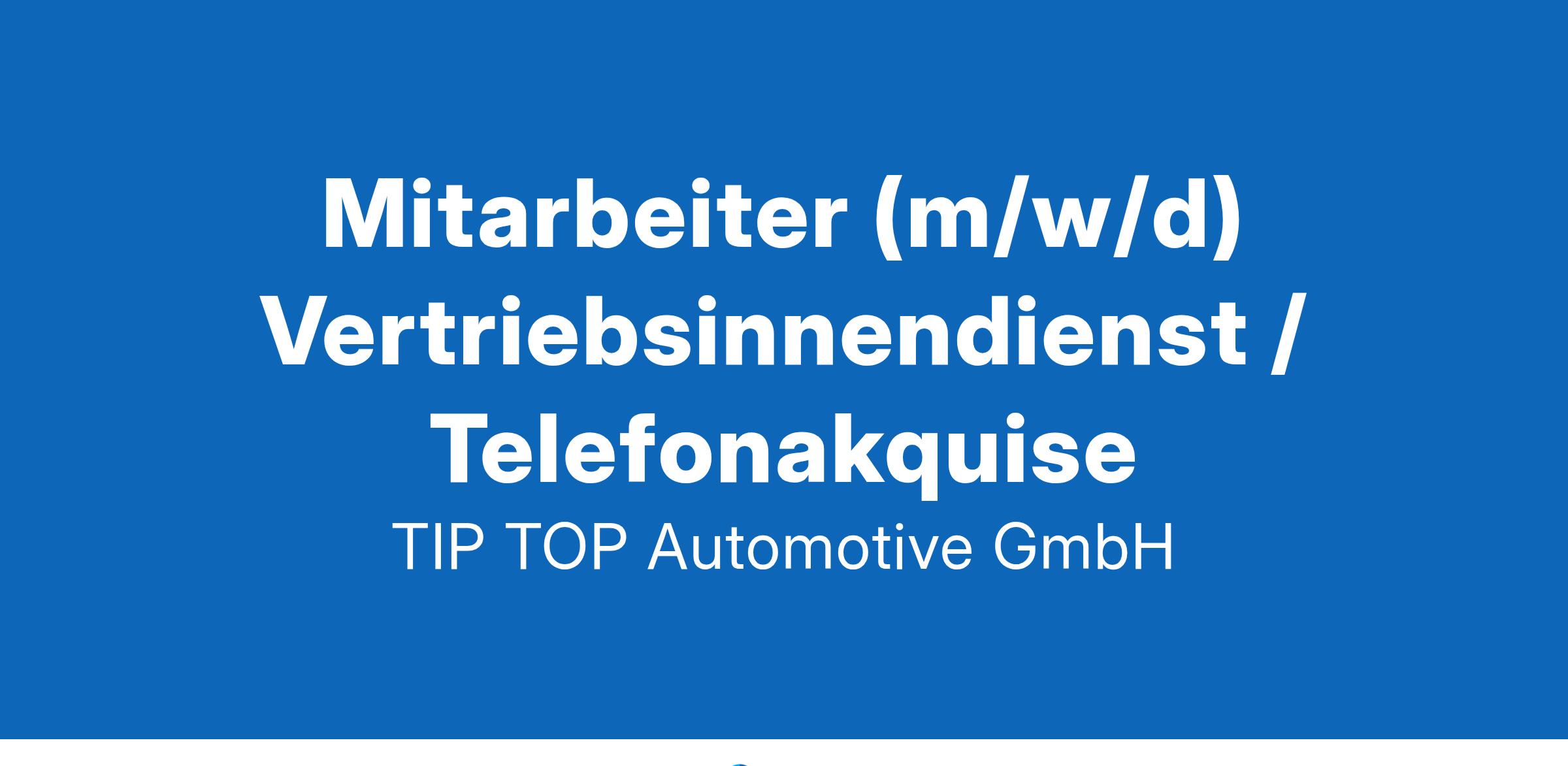 Standort: 59581 Warstein-Belecke Art der Anstellung: Vollzeit Einstiegslevel: Berufserfahrene Mitarbeiter (m/w/d) Vertriebsinnendienst / Telefonakquise Ihr Aufgabengebiet Auftragsannahme und Auftragsbearbeitung Erstellung von Angeboten Annahme und Bearbeitung von Retouren- und Lieferreklamationen Annahme und Bearbeitung von Reparaturen und Reklamationen Erstellung von Gutschriften Betreuung der zugeteilten Außendienstkollegen (m/w/d) Schnittstellenfunktion zum Außendienst und anderen internen Abteilungen Kundenbetreuung Stammdatenpflege – Neukundenanlage Ihr Profil Eine erfolgreich abgeschlossene kaufmännische Ausbildung oder eine vergleichbare Qualifikation Berufserfahrung im Vertriebsinnendienst Erfahrung im Umgang mit den gängigen MS Office Anwendungen und Warenwirtschaftssystemen Ein hohes Maß an Dienstleistungsorientierung und kommunikativer Stärke Gute Deutschkenntnisse Teamfähigkeit sowie ein verbindliches und selbstbewusstes Auftreten runden Ihr Profil ab Wir bieten Ihnen Teil eines internationalen Konzernverbundes Hochwertiges technisches Equipment Strukturierter Einstieg Bikeleasing, Corporate Benefits Sozialleistungen Über uns Die TIP TOP Automotive GmbH ist eine Tochtergesellschaft eines weltweit agierenden, renommierten Großunternehmens und in seinem Geschäftsbereich Automotive führend in den Bereichen Reifenreparatur und Werkstatteinrichtung. Sie gewährleistet innovative Lösungen für den Reifenmarkt (Automobil, Zweirad und Fahrrad) und bietet ihren Kunden maßgefertigte Systemlösungen aus einer Hand. Die Kunden profitieren dabei von einem Komplett-Programm aus Eigenprodukten, Handelsware und einem umfangreichen Service- und Schulungsangebot. Sollten Sie noch Fragen an uns haben, dann hilft Ihnen unser konzerninternes Recruiting-Team der dbs Delta Business Service GmbH gerne weiter! Bewerbung an bewerbung@dbs-gruppe.de Telefon +49 (0) 2836 911 5000