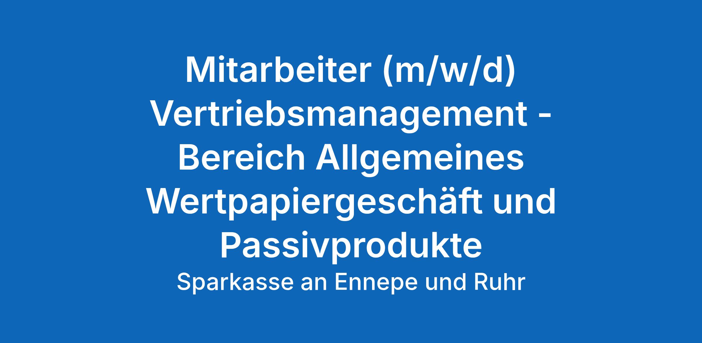 Mitarbeiter (m/w/d) Vertriebsmanagement - Bereich Allgemeines Wertpapiergeschäft und Passivprodukte.