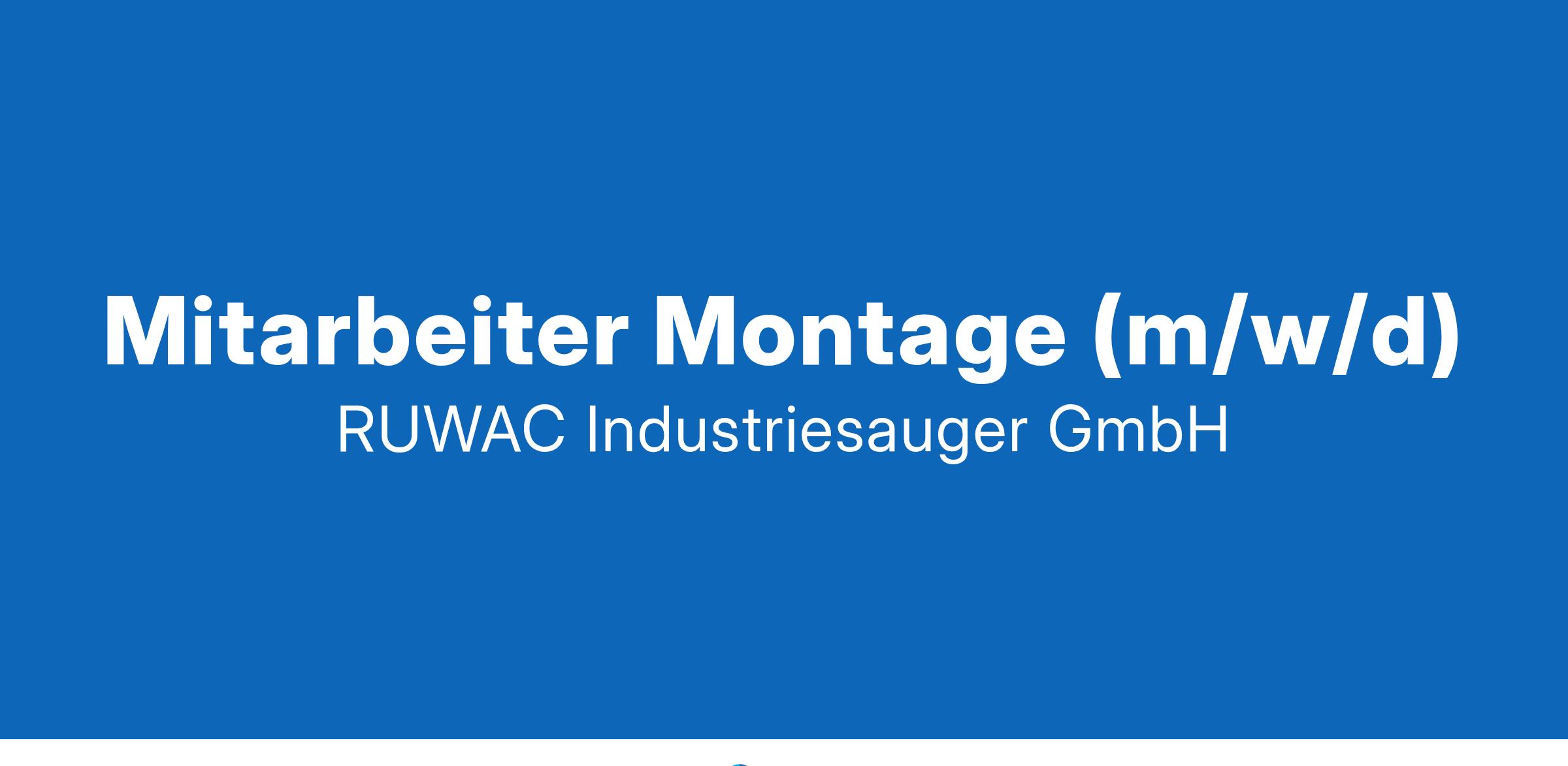 Mitarbeiter Montage (m/w/d) befristet für 12 Monate Deine Aufgaben DEINE AUFGABEN Selbstständige, fachgerechte und wirtschaftliche Montage nach Vorgabe im zugewiesenen Arbeitsbereich Prüfung der Fertigungsunterlagen auf Richtigkeit und Vollständigkeit Durchführung der Fertigungsselbstkontrolle durch Sicht- und Funktionsprüfung Ordnung und Sauberkeit im Arbeitsbereich sicherstellen Ausführung von angeordneten innerbetrieblichen Sonderaufgaben Der/Die Stelleninhaber/in ist angehalten, den kontinuierlichen Verbesserungsprozess laufend zu unterstützen Dein Profil DEIN PROFIL Abgeschlossene Berufsausbildung im produzierenden oder handwerklichen Bereich oder vergleichbar Idealerweise Erfahrungen in der mechanischen Montage Sicherer Umgang mit Stücklisten und Zeichnungen wünschenswert Selbstständige, systematische und sorgfältige Arbeitsweise Zuverlässigkeit, Flexibilität und Teamfähigkeit vorausgesetzt Gute Deutschkenntnisse in Wort und Schrift Idealerweise Erfahrungen im Umgang mit einem ERP-System KONTAKT Wir freuen uns über deine Bewerbung per Mail an bewerbung(AT)ruwac.de Ruwac Industriesauger GmbH