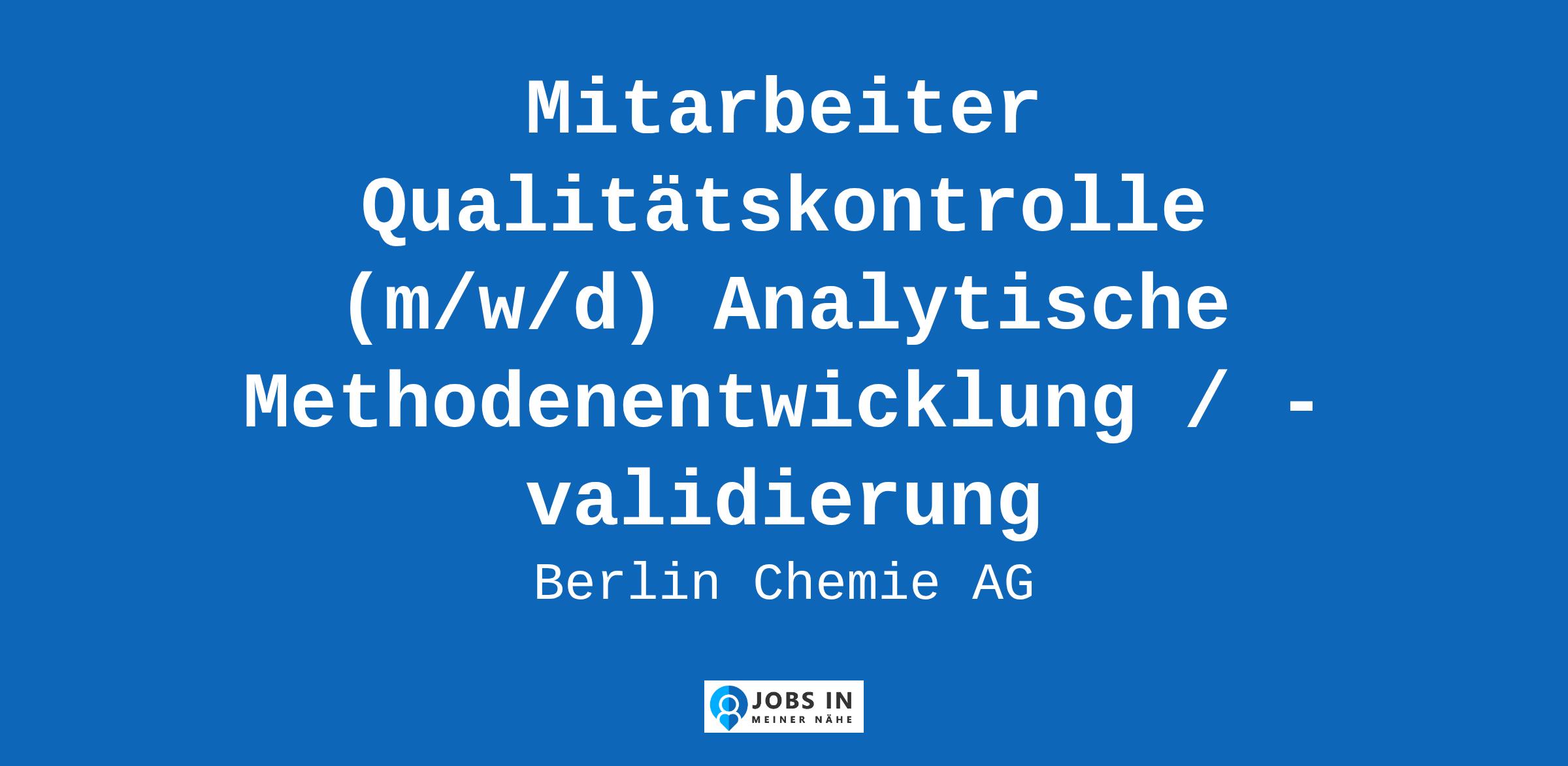 BERLIN-CHEMIE ist ein seit über 100 Jahren bestehendes, international tätiges Pharmaunternehmen und gehört zur Menarini-Group, führend in der italienischen Pharmabranche. Der Einsatz für die Gesundheit ist das, was unsere mehr als 5.000 Mitarbeitenden antreibt und verbindet. Mit Neugierde und Lei... Pharmazeut, Chemiker, Pharmatechnik, Lebensmitteltechnik, Techniker, Quality Analyst, QA, QM, Qualitätsmanager Qualitätskontrolle;Englisch;HPLC;UV;Auswertung;Chemietechnik;Servicearbeiten;Lebensmittelchemie;Deutsch;Überwachung;DC;Planung;Validierung;Kalibrierung;Arzneimittel;Deutsch;Prüfmittelplanung;Instrumentenanalyse;Koordination;Apotheken;Promotionen;Analyse;SOP Original Stellenanzeige auf StepStone.de – Jetzt Jobagent bei StepStone einrichten und Traumjob finden! https://bit.ly/2KOagYD Mehr Informationen zu Arbeitgebern, Gehaltsdaten und Karrieretipps finden Sie auf StepStone.de