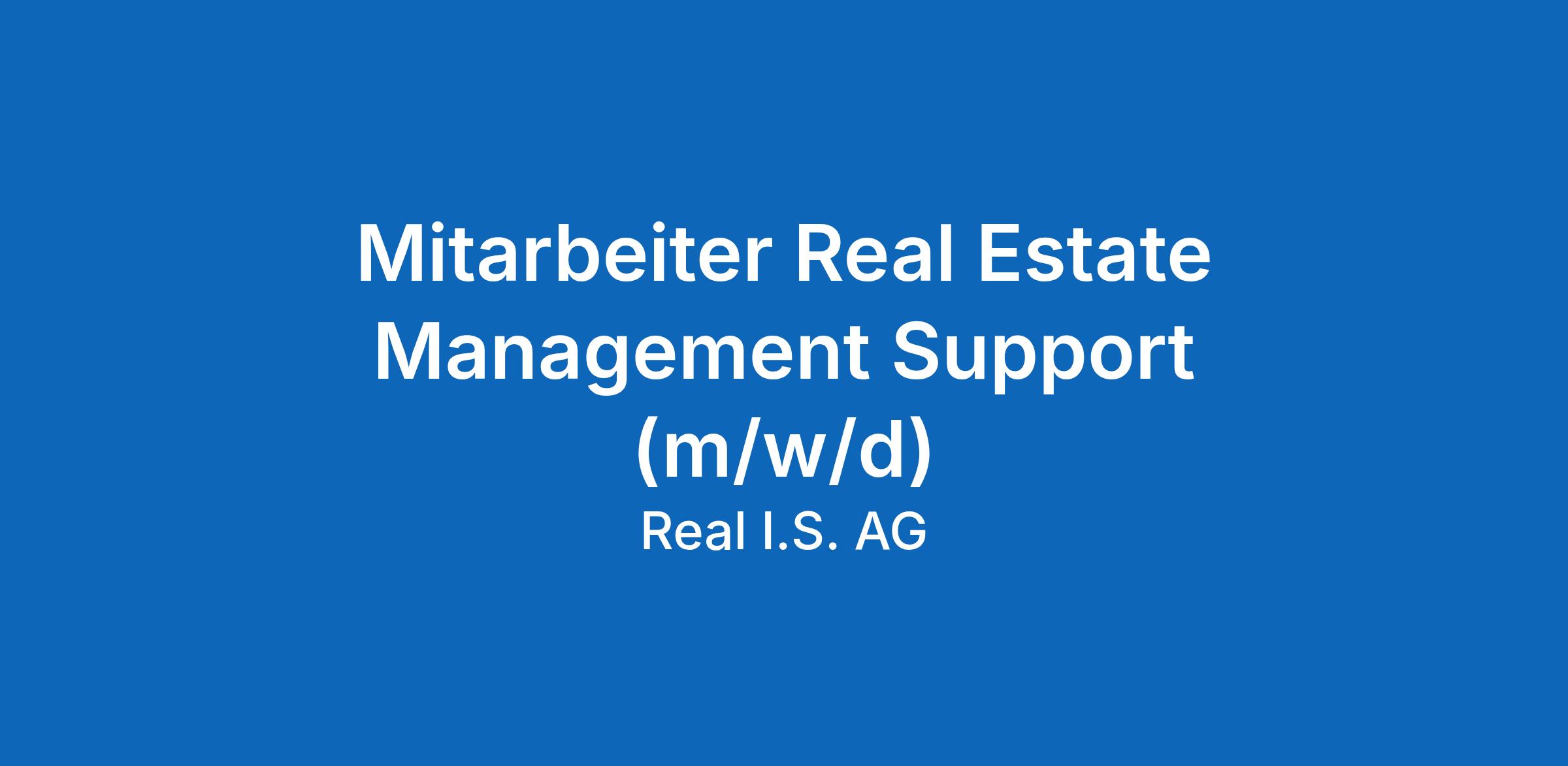 München Real I.S. Real Estate Management GmbH unbefristet Vollzeit | ab sofort