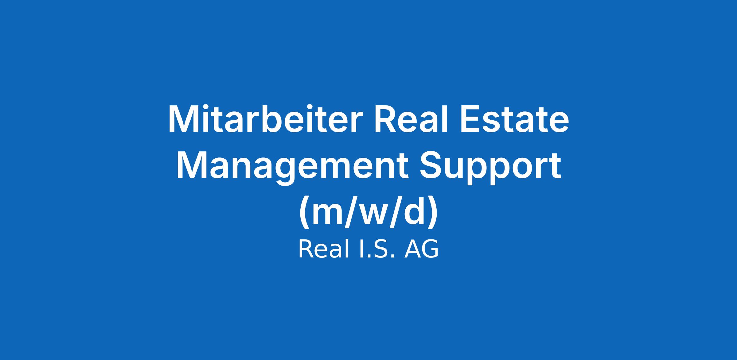 München Real I.S. Real Estate Management GmbH unbefristet Vollzeit | ab sofort