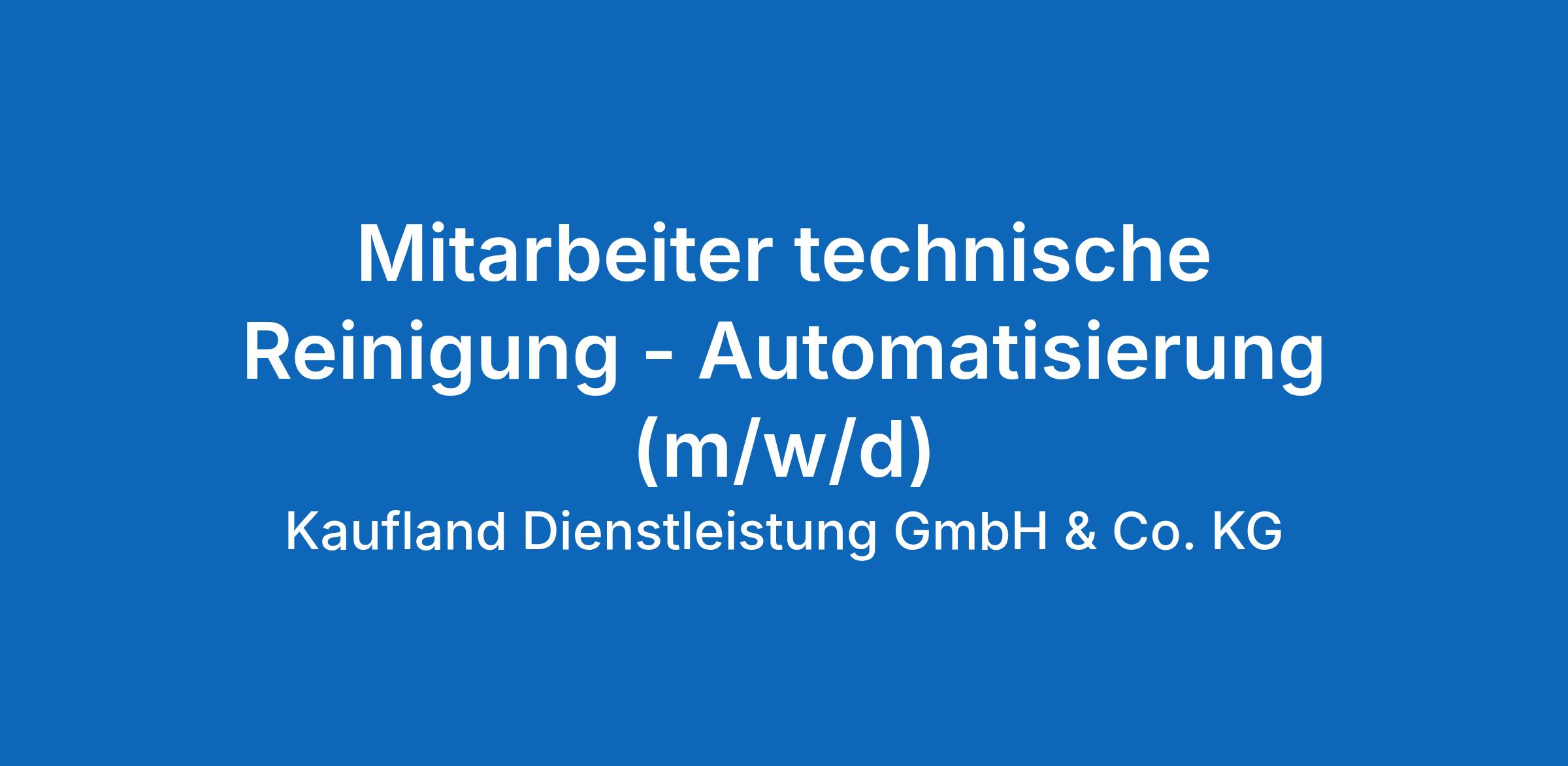 Mitarbeiter technische Reinigung - Automatisierung (m/w/d)