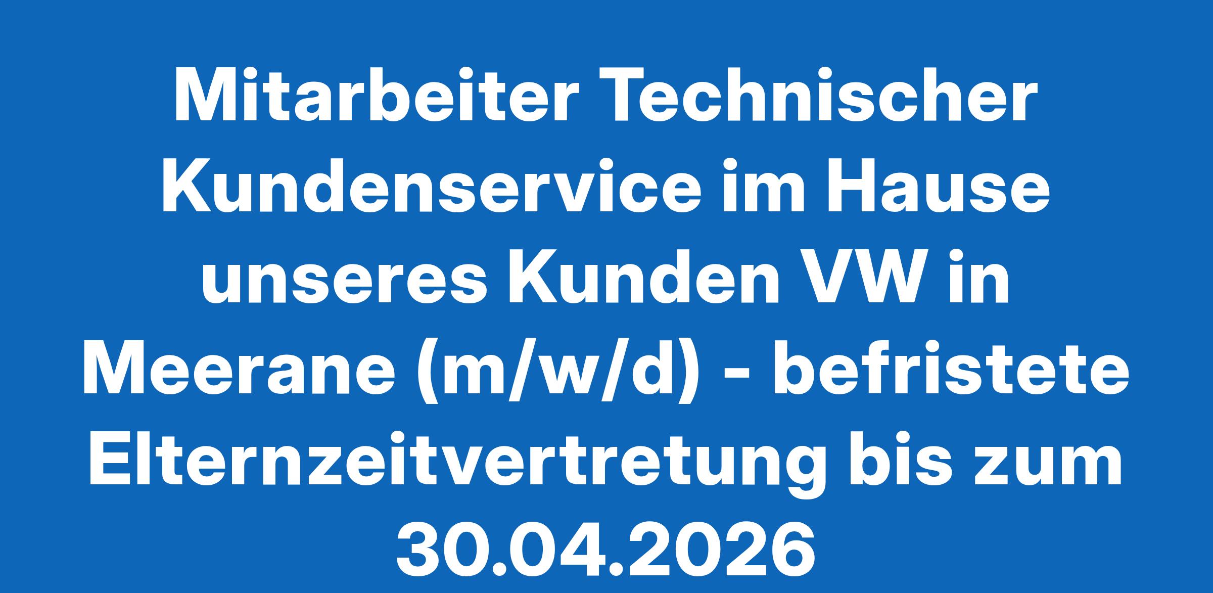 Mitarbeiter Technischer Kundenservice im Hause unseres Kunden VW in Meerane (m/w/d) - befristete Elternzeitvertretung bis zum 30.04.2026