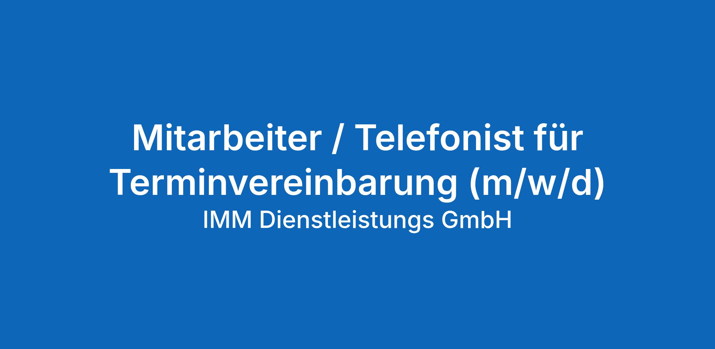 Mitarbeiter / Telefonist für Terminvereinbarung (f/m/d)