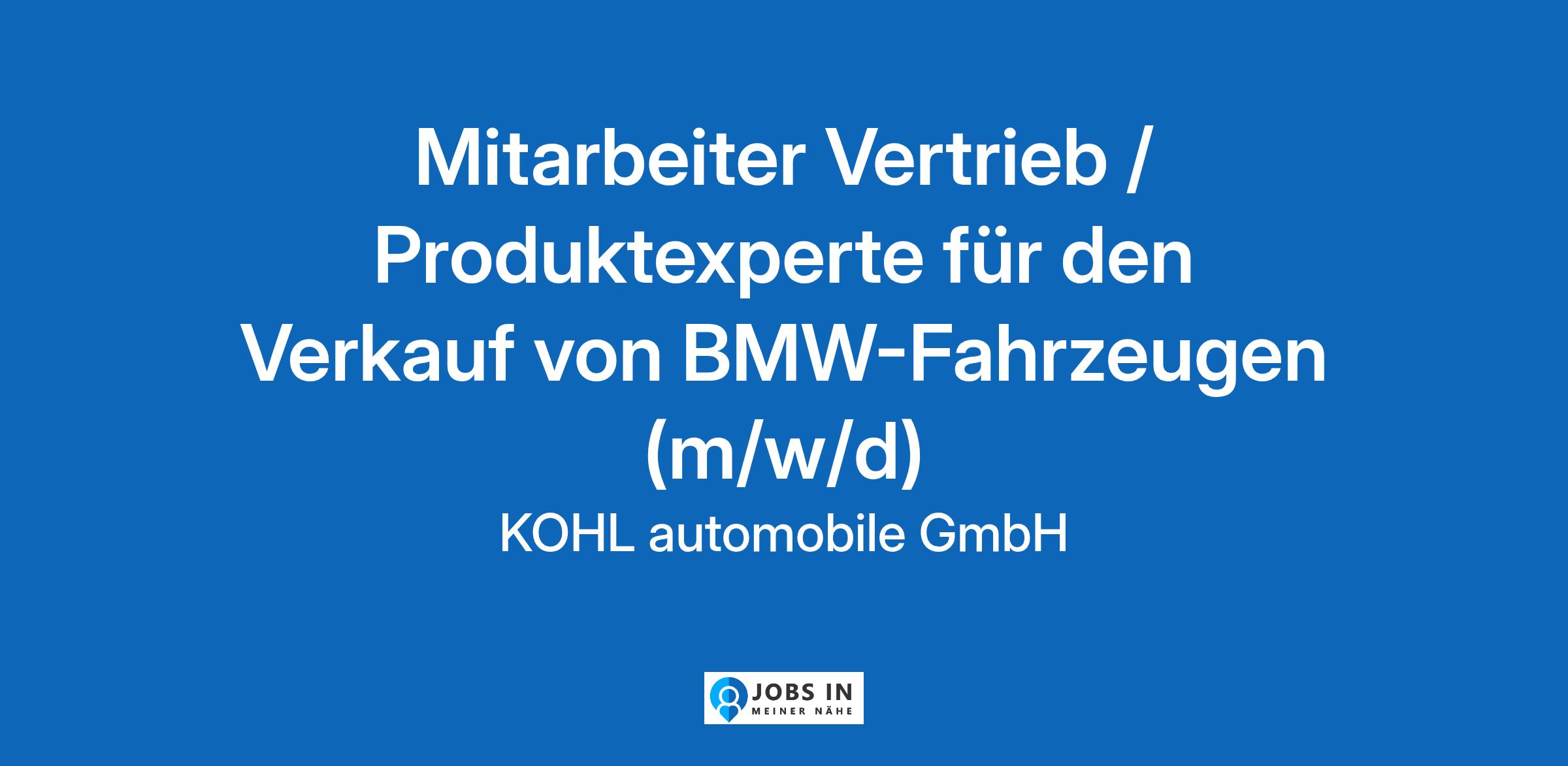 Mitarbeiter Vertrieb / Produktexperte für den Verkauf von BMW-Fahrzeugen (m/w/d)