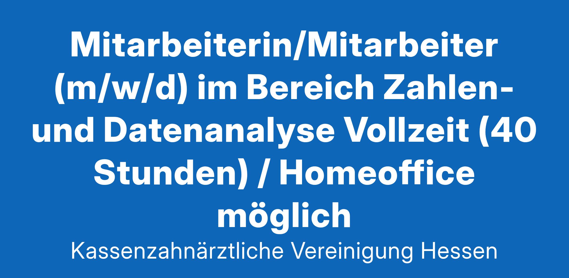 Die Abteilung Vertragszahnärztliche Dienste der Kassenzahnärztlichen Vereinigung Hessen sucht zum nächstmöglichen Zeitpunkt eine zahlenaffine, engagierte und kreative Persönlichkeit (m/w/d)