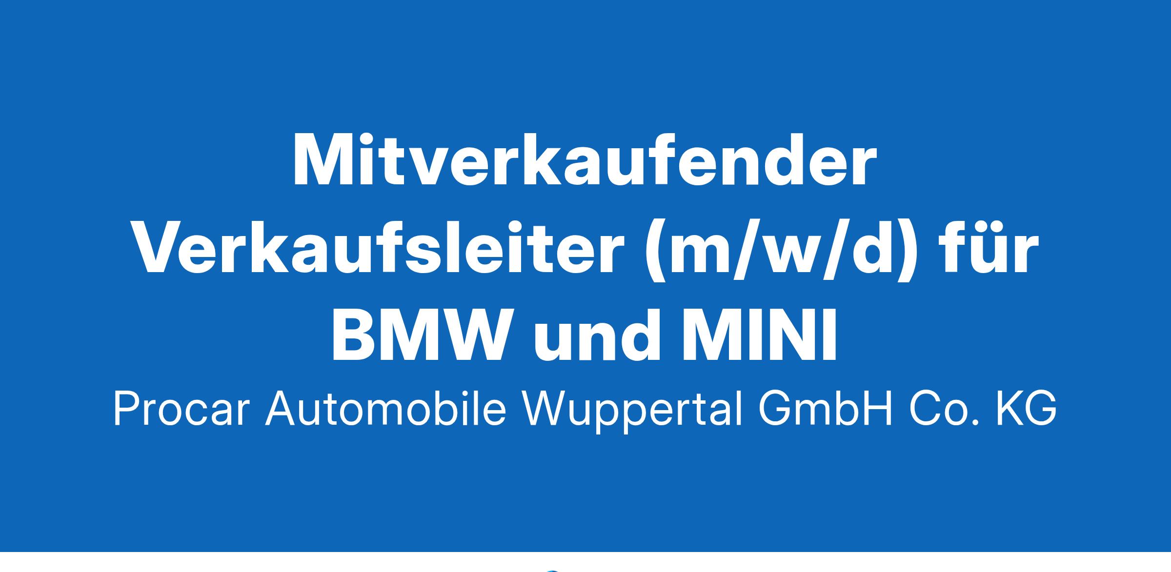Mitverkaufender Verkaufsleiter (m/w/d) für BMW und MINI48282 Emsdetten, Grevener Damm 260Präsenz / MobilFührungskraft Erste EbeneVertrieb, Key AccountingVollzeitVerkaufsleidenschaft auf vier Rädern! Werde Teil unseres Teams und bringe Fahrträume auf die Straße.Seit über 30 Jahren steht die Procar Automobile Gruppe für Zuverlässigkeit, Dynamik und Kundenzufriedenheit. Mit 24 Standorten in NRW, über 1.450 Mitarbeitenden und ca. 300 Auszubildenden zählen wir zu den größten Händlern für BMW, MINI, Rolls-Royce, KIA und Hyundai in Deutschland.