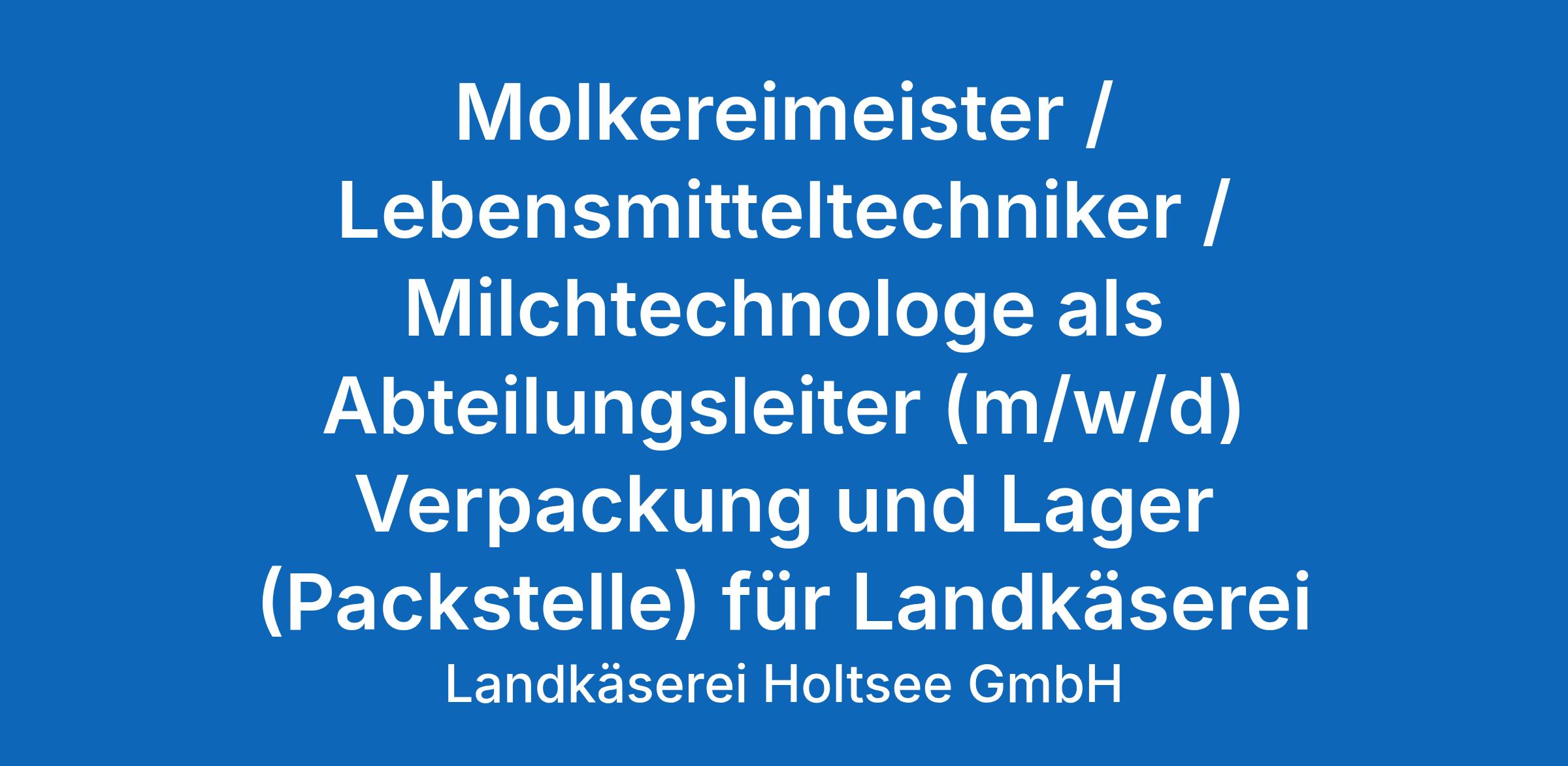 Molkereimeister / Lebensmitteltechniker / Milchtechnologe als Abteilungsleiter (m/w/d) Verpackung und Lager (Packstelle) für Landkäserei