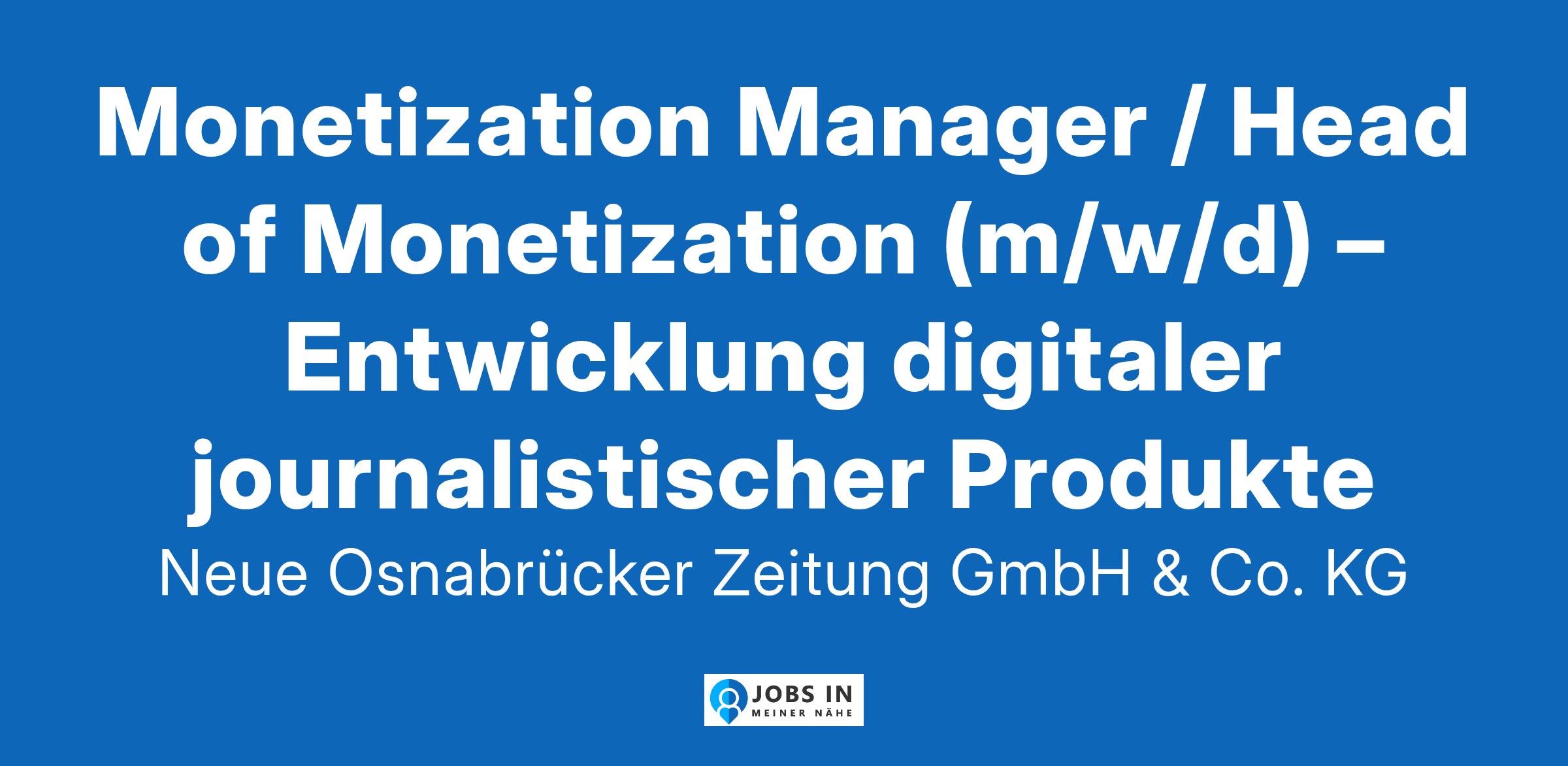 Monetization Manager / Head of Monetization (m/w/d) – Entwicklung digitaler journalistischer Produkte