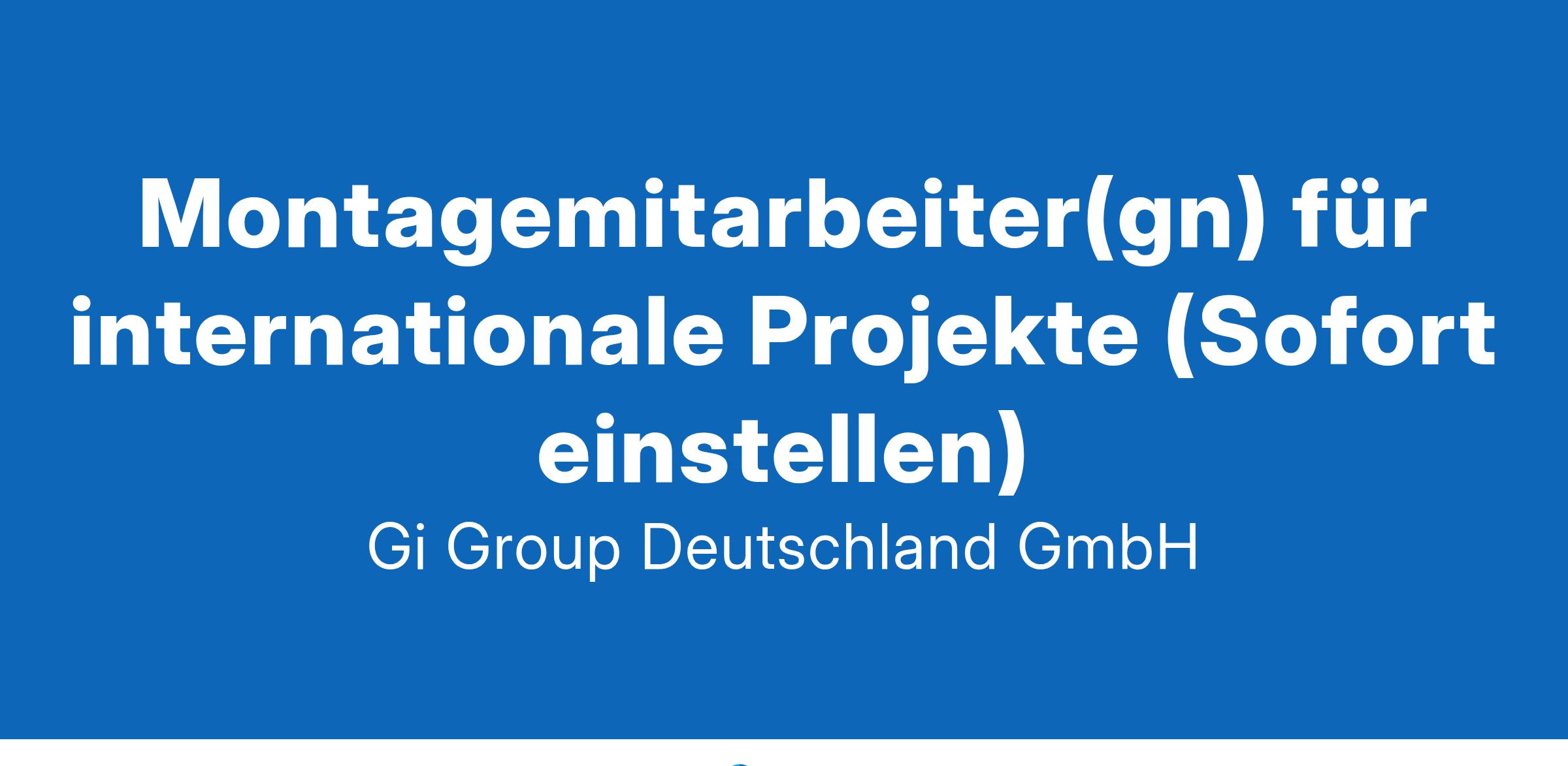Montagemitarbeiter(gn) für internationale Projekte (Sofort einstellen)