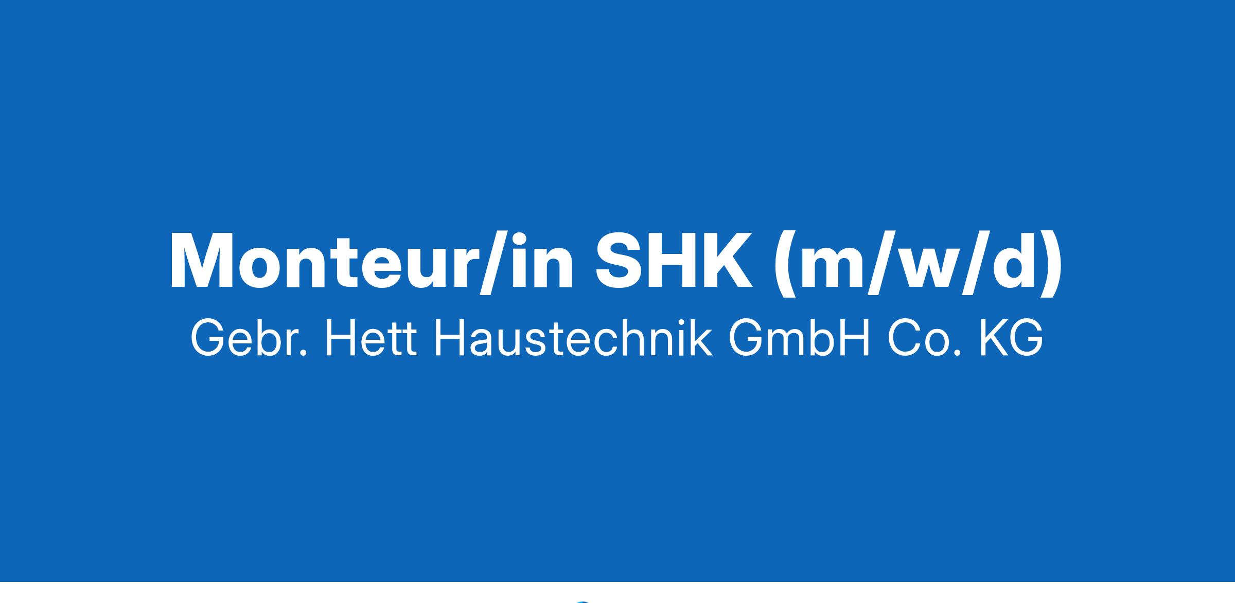 Monteur/in SHK (m/w/d) Details Wir sind ein zukunftsorientiertes Unternehmen mit idealen Rahmenbedingungen in einem familiären, angenehmen Arbeitsumfeld. Konsequente Kundenorientierung ist ein Grundpfeiler unserer Unternehmenskultur. Ihre Aufgaben und Tätigkeiten Montage von Wärmepumpen, Heizungsanlage und Sanitäranlagen Arbeitsvorbereitung und Auftragsabwicklung inkl. Aufmaßerstellung Fachliche Abstimmung mit anderen Gewerken und der Bauleitung/Kunde Umsetzung und Einhaltung der aktuellen Normen und Richtlinien Was wir bieten angenehmes Arbeitsumfeld in einem kollegialen Team interessantes und abwechslungsreiches Aufgabengebiet Arbeiten in einem zukunftsorientierten und krisensicheren Gewerk Umsetzung der Klimaziele durch Einbau von Anlagen der erneuerbaren Energien geförderte Altersvorsorge Vermögenswirksame Leistungen (VWL) flache Hierarchien Weiterbildungsmöglichkeiten Weihnachts- und Urlaubsgeld Neue Arbeitskleidung und Arbeitsschuhe werden gestellt Neues Werkzeug und Fahrzeuge E-Bike Leasing auf Wunsch möglich Was wir erwarten abgeschlossene Berufsausbildung als Anlagenmechaniker für Heizungs- und Klimatechnik Selbstständiges Arbeiten Engagement und teamorientiertes Arbeiten Führerschein Klasse B Lesen und Umsetzen von Montageplänen Zuverlässigkeit und Pünktlichkeit Arbeitsbeginn: nach Absprache Befristung: unbefristet Vertragsart: Vollzeit Die Bewerbung geht an Firma Gebr. Hett Haustechnik GmbH & Co. KG Kirdorfer Straße 60 61350 Bad Homburg vor der Höhe E-Mail info@hett.de Telefon 06172 81014