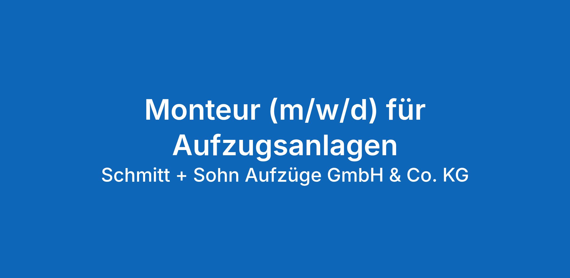 Für unsere Niederlassung in Nürnberg suchen wir Sie zum nächstmöglichen Zeitpunkt als: Monteur (m/w/d) für Aufzugsanlagen