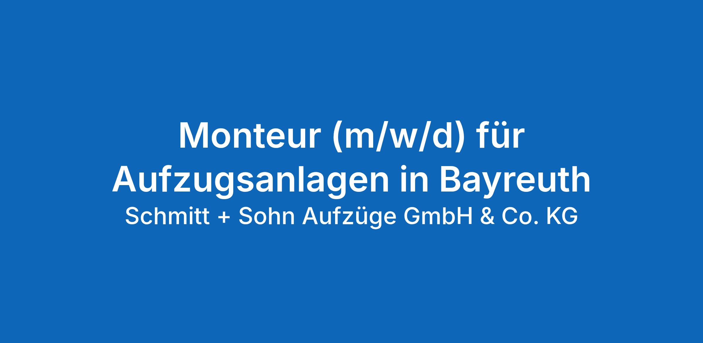 Absolute Markt- und Kundenorientierung sowie ein von Vertrauen und Eigenverantwortung getragenes Unternehmensklima zeichnen uns aus. Für unsere Niederlassung in Bayreuth suchen wir Sie zum nächstmöglichen Zeitpunkt als: Monteur (m/w/d) für Aufzugsanlagen