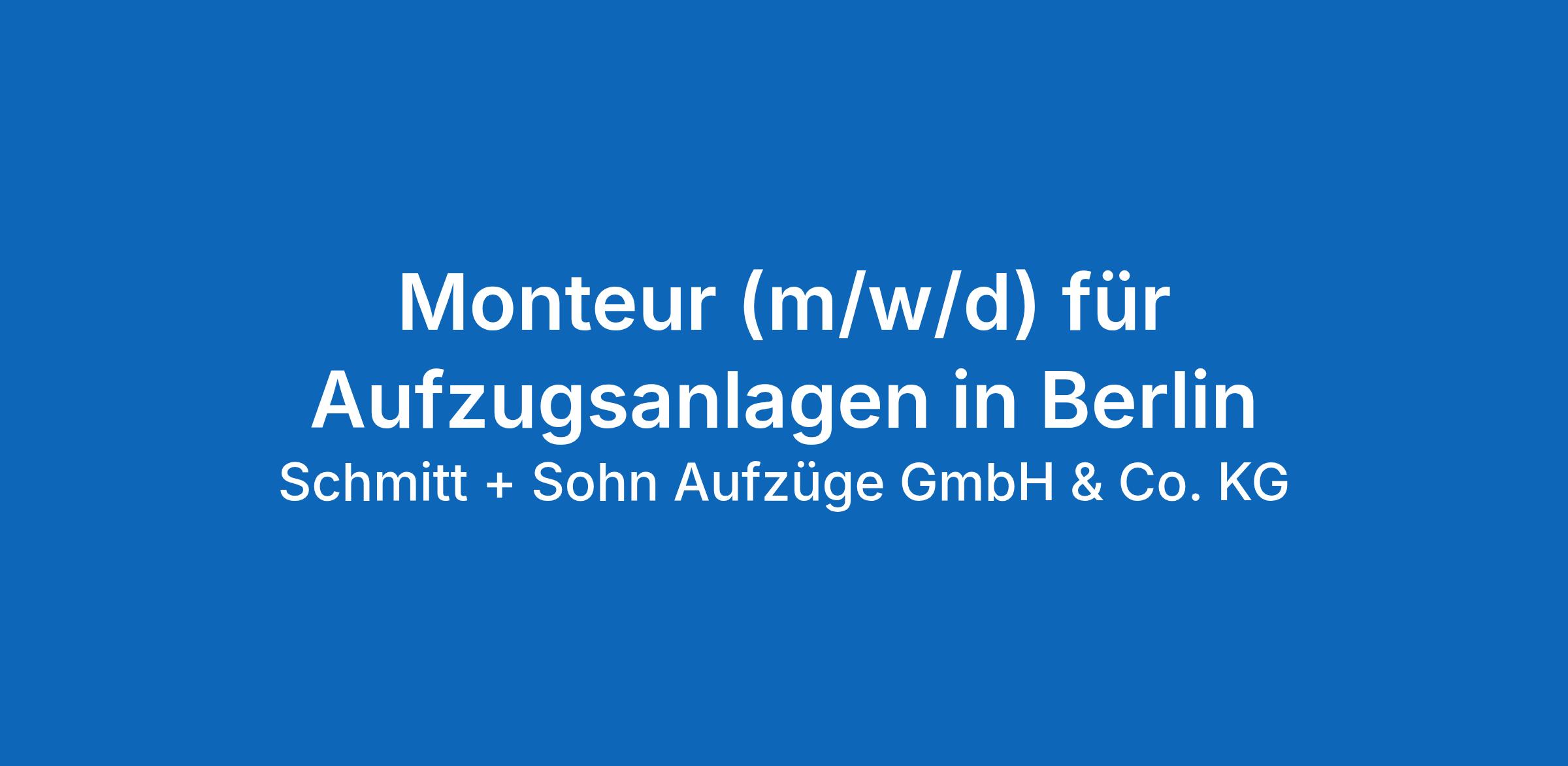 Absolute Markt- und Kundenorientierung sowie ein von Vertrauen und Eigenverantwortung getragenes Unternehmensklima zeichnen uns aus. Für unsere Niederlassung in Berlin suchen wir Sie zum nächstmöglichen Zeitpunkt als: Monteur (m/w/d) für Aufzugsanlagen