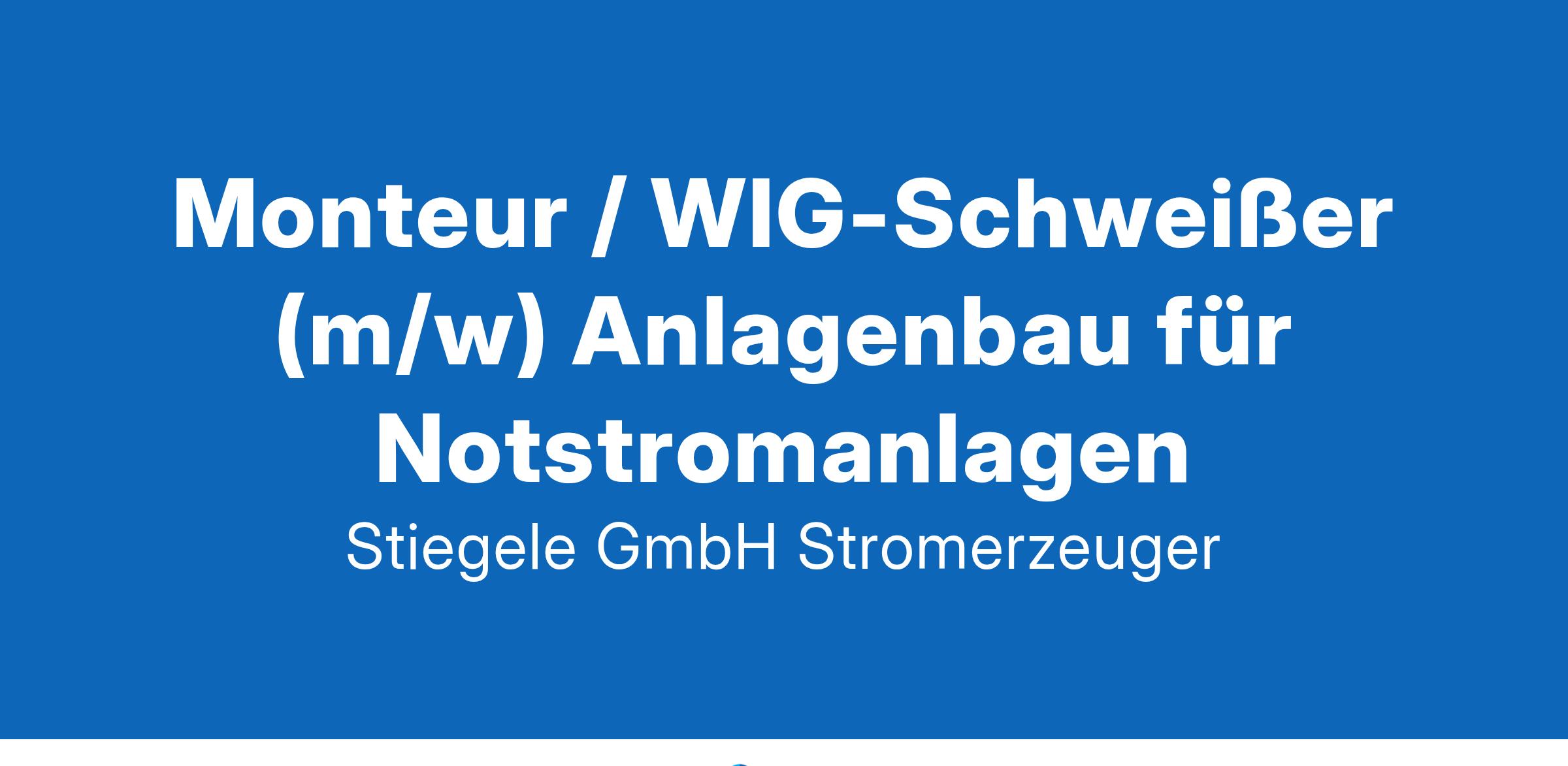 Monteur / WIG-Schweißer (m/w) Anlagenbau für Notstromanlagen Wir sind die Profis, wenn‘s um Notstromaggregate geht – von der Planung bis zur Inbetriebnahme. In Zeiten, in denen eine absolut verlässliche Versorgung mit elektrischer Energie stets gewährleistet sein muss, vertrauen Kunden aus Industrie und Internet sowie Krankenhäuser, Behörden und Versicherungen auf unsere maßgeschneiderten Netzersatzanlagen. Zur Verstärkung unseres Montageteams brauchen wir Sie als Monteur/WIG-Schweißer (m/w) Anlagenbau für Notstromanlagen RAUM HEILBRONN Freude an interessanter Technik Sie suchen Abwechslung, ein prima Team und wollen mit Technik arbeiten, die Sie begeistert? Dann sind Sie bei uns genau richtig. Ihr Werkzeugkasten: eine Ausbildung als Industriemechaniker, Metallbauer, Konstruktionsmechaniker oder Maschinenbaumechaniker und Erfahrung in der Anlagenmontage. Skills im Rohrbiegen und WIG-Schweißen? Wäre super, ist aber kein Muss. Hand in Hand zum Erfolg Bei uns sind Sie mitten im Geschehen – egal ob vor Ort beim Kunden oder in unserer eigenen Fertigung. Sie schließen Kraftstoffanlagen zur Versorgung der Dieselmotoren an und verrohren die Abgasanlagen vom Schalldämpfer bis zur Nachbehandlung. Da kommen schon mal bis zu 100 Meter Stahl- und Edelstahlrohre zusammen. Warum wir? Weil es bei uns passt: familiäres Miteinander, kurze Wege und ein Team, das zusammenhält. Fragen? Uwe Stiegele hat die Antworten – rufen Sie ihn einfach an. Er freut sich auf Ihren Anruf unter Tel. 07134 9866-14. Was Sie bekommen: Top-Ausstattung Guter Verdienst 30 Tage Urlaub Sicherer Job in einem erfolgreichen, zukunftsorientierten Familienunternehmen Prima Team, freundliches Arbeitsklima Weiterentwicklungsmöglichkeiten Klingt gut? Dann sende deine Bewerbung jetzt schnell an: bewerbung@stiegele-stromerzeuger.de Wir freuen uns auf dich! Stiegele GmbH Stromerzeuger Senefelder Straße 8 74182 Obersulm-Willsbach www.stiegele-stromerzeuger.de