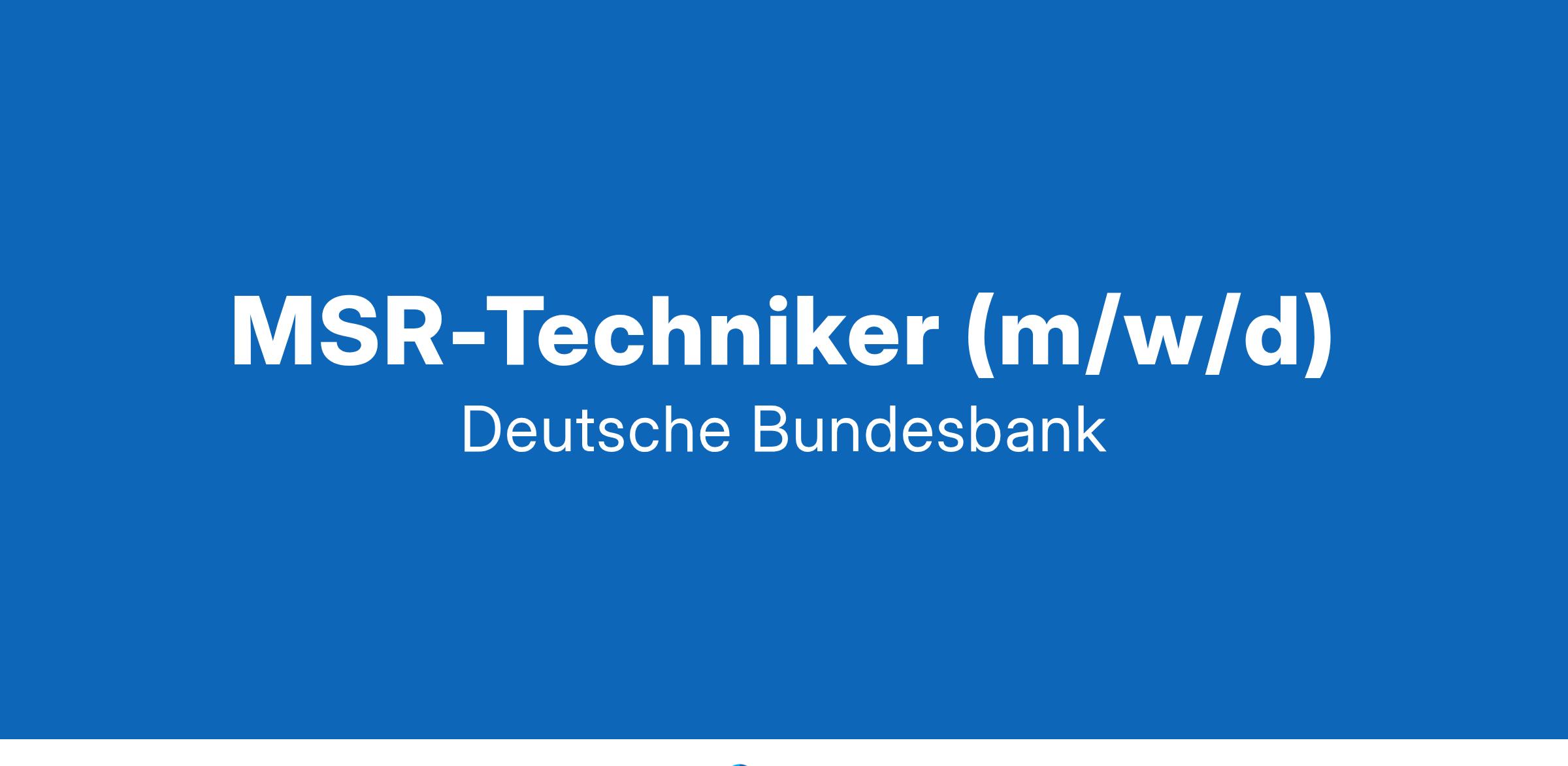 Die Deutsche Bundesbank ist eine besondere Bank. Wir sorgen mit der EZB und den anderen europäischen Zentralbanken für einen stabilen Euro. Dafür und für weitere Zentralbankaufgaben brauchen wir eine große Vielfalt von Spezialistinnen und Spezialisten in handwerklichen Arbeitsbereichen, damit die Institution funktionieren kann. Werden auch Sie Teil von etwas Besonderem und finden Sie ein sicheres berufliches Zuhause! MSR-Techniker*in (m/w/d)